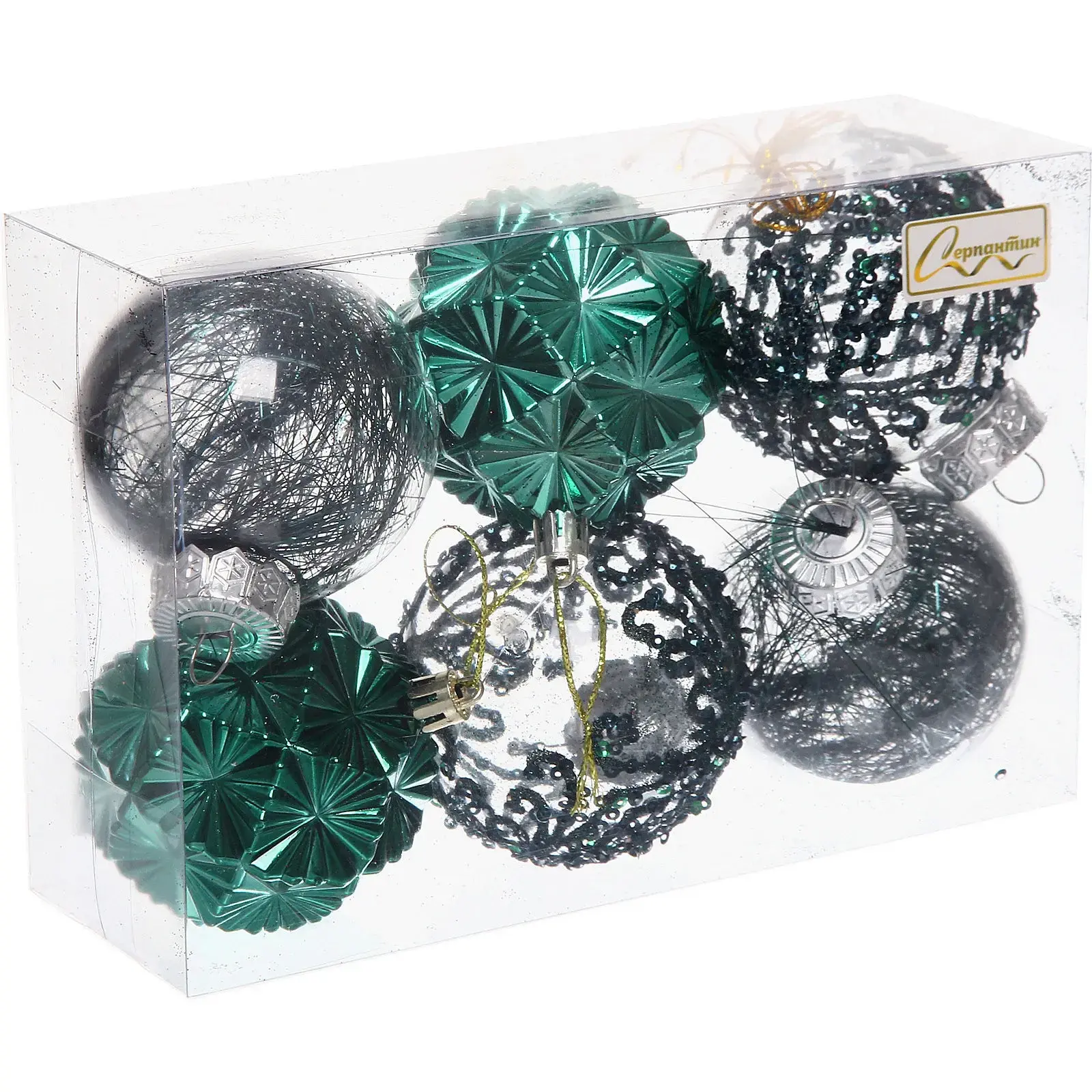 Набор шаров «Зимний Этюд» 7 см (в наборе 6 шт), Изумруд, пластик, для елки и декорирования