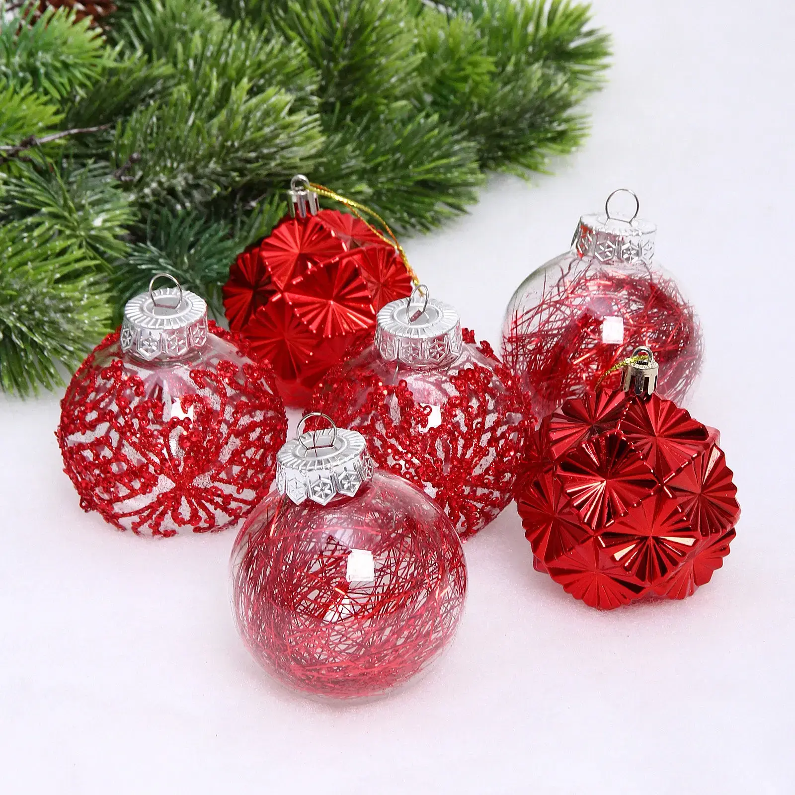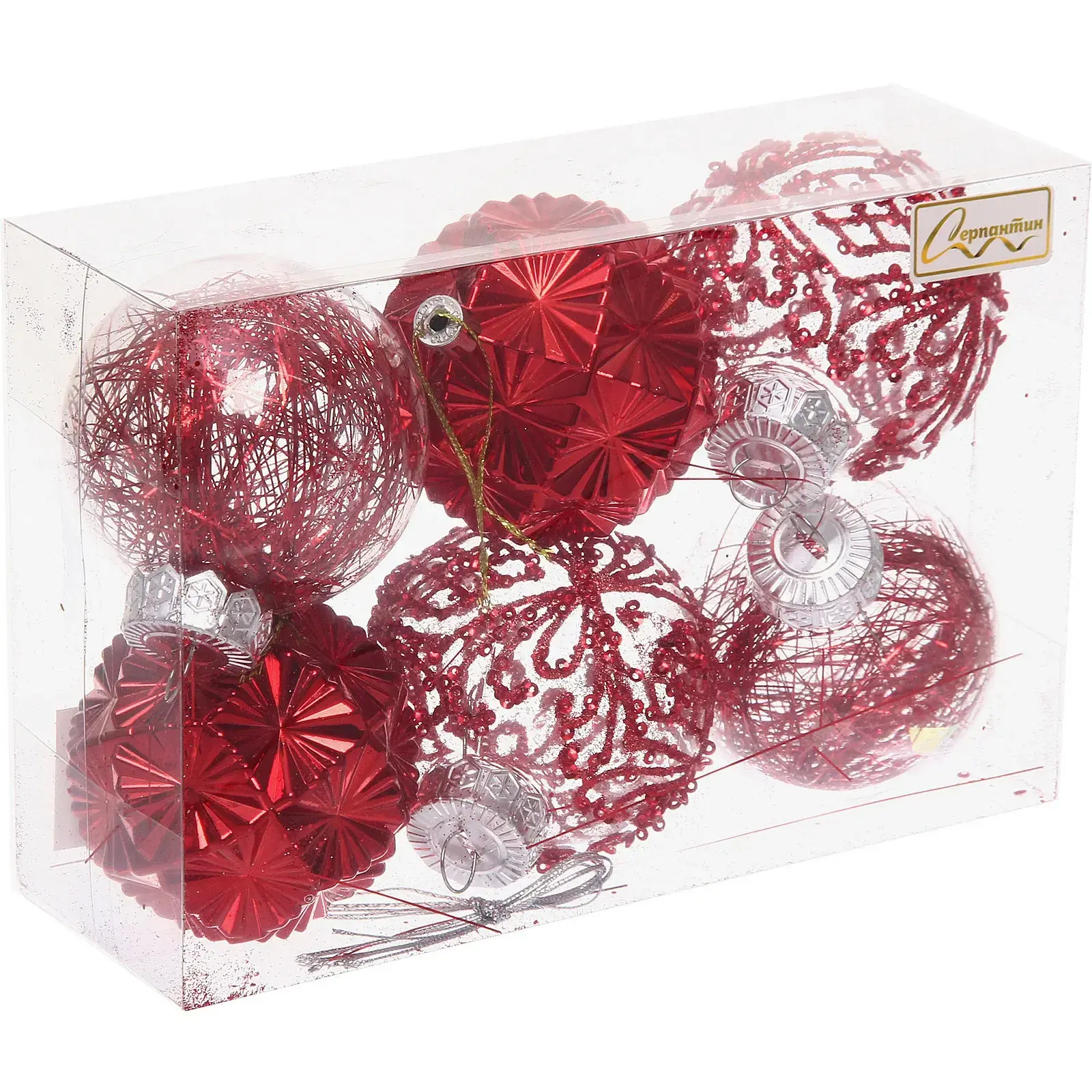 Набор шаров «Зимний Этюд» 7 см (в наборе 6 шт), Красный, пластик, для елки и декорирования
