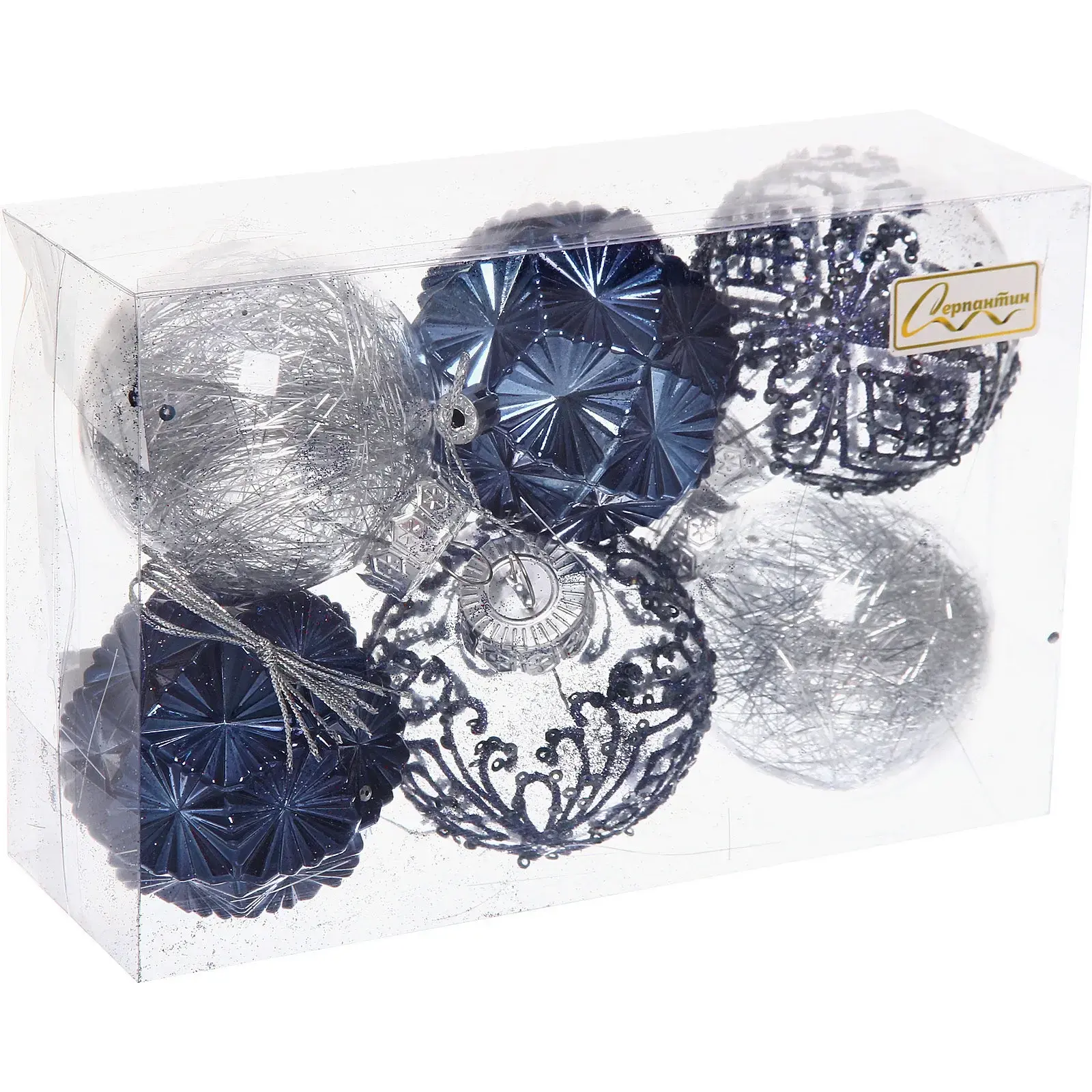 Набор шаров «Зимний Этюд» 7 см (в наборе 6 шт), Сапфир, пластик, для елки и декорирования