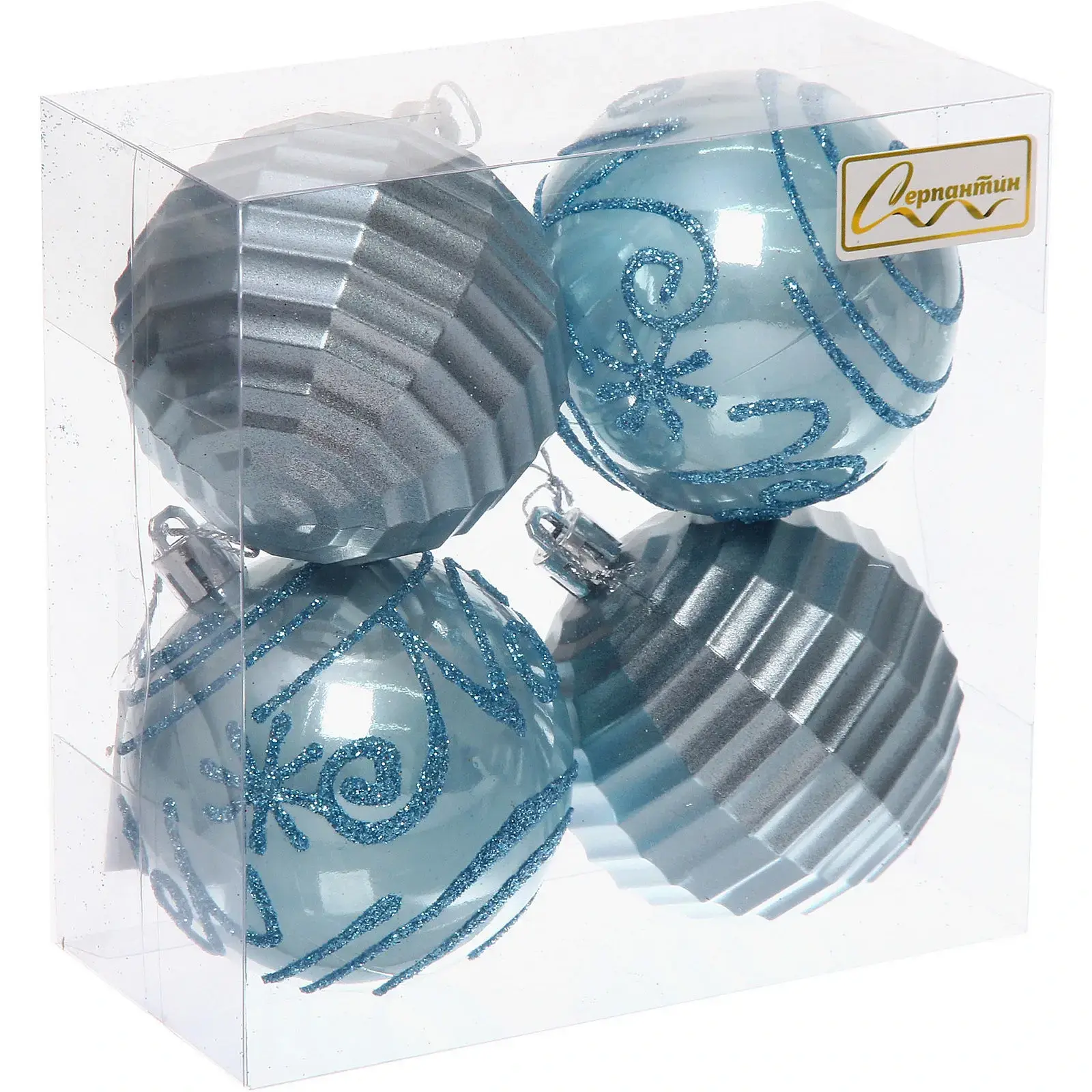 Превратите украшение ёлки в удовольствие с набором из 4 стильных шаров "Зимний коллаж". Их благородные голубые и серебристые оттенки создают неповторимую зимнюю атмосферу.