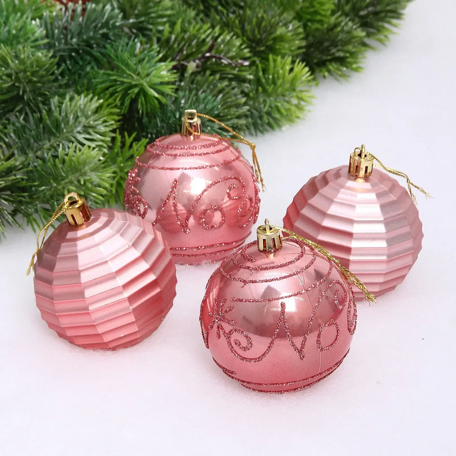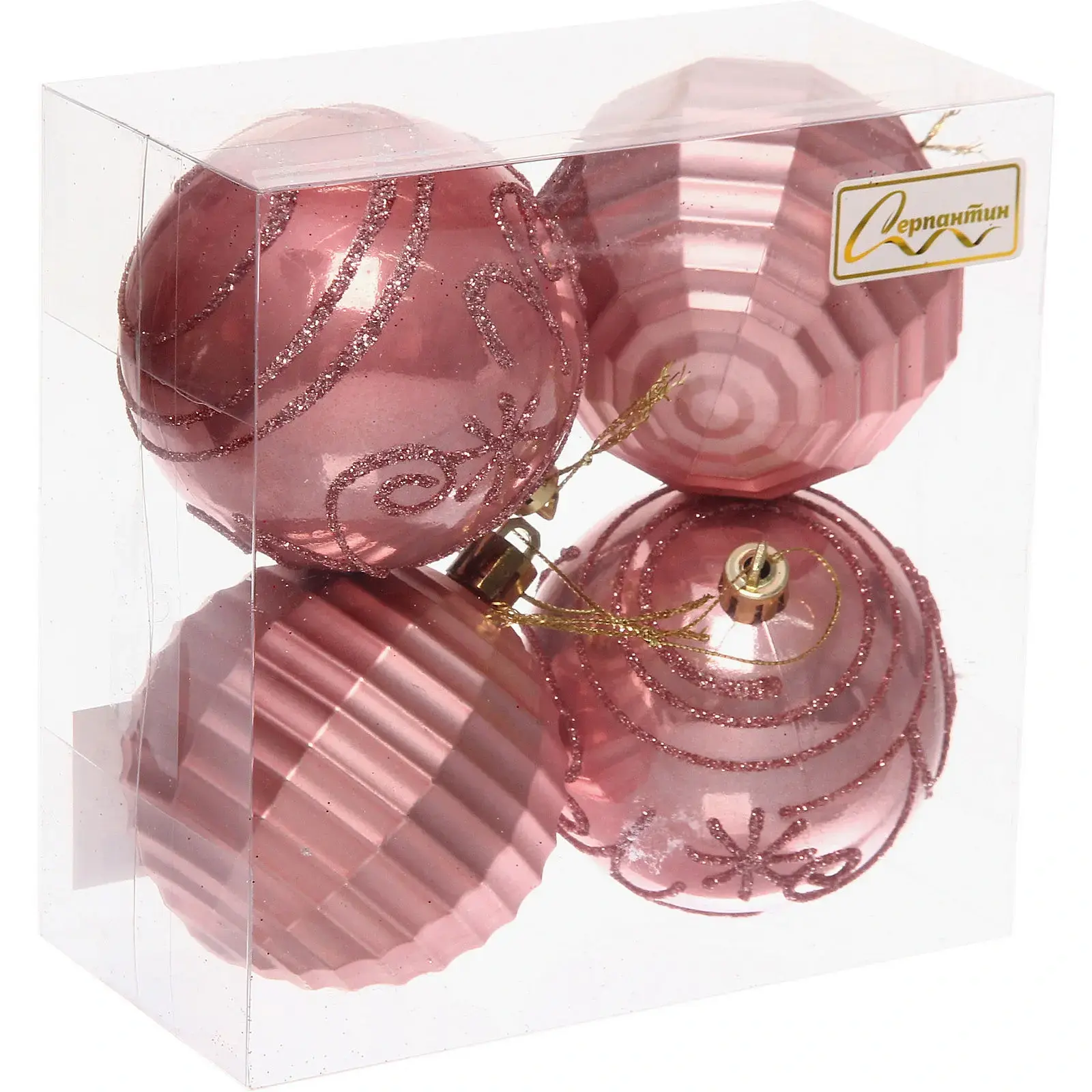 Набор шаров «Зимний коллаж» 7 см (в наборе 4 шт), Розовое золото, пластик, для елки и декорирования