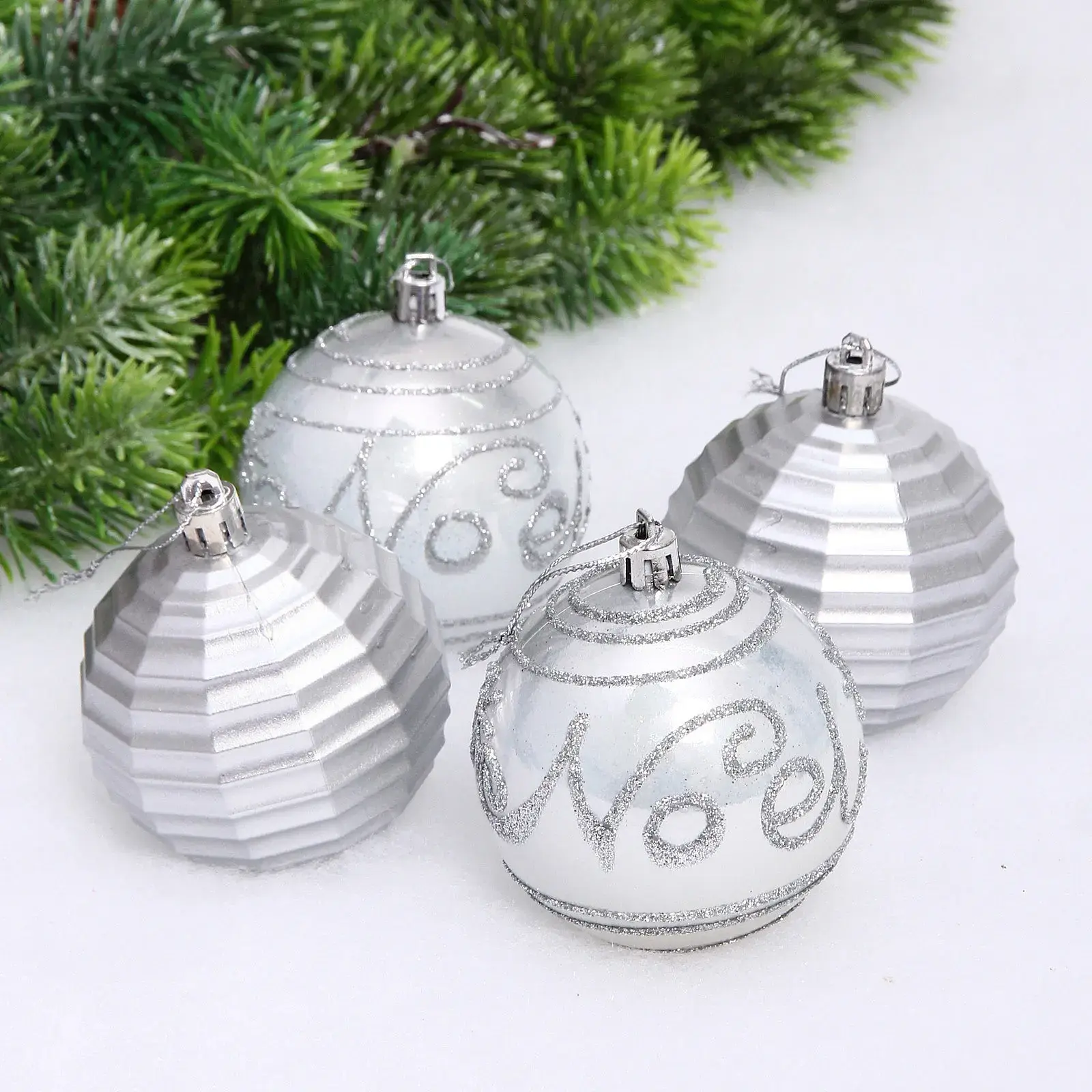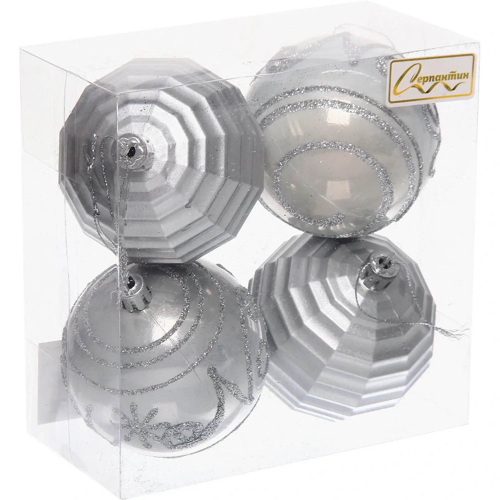 Набор шаров «Зимний коллаж» 7 см (в наборе 4 шт), Серебро, пластик, для елки и декорирования