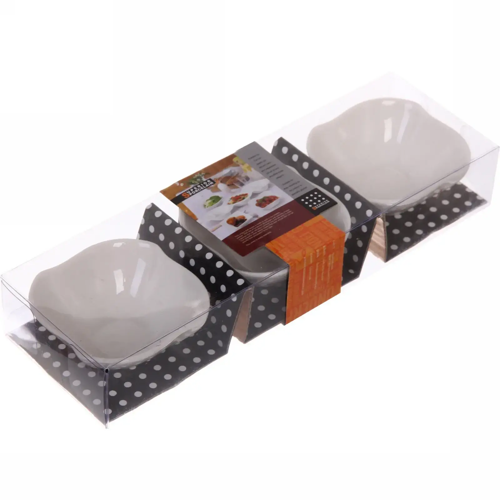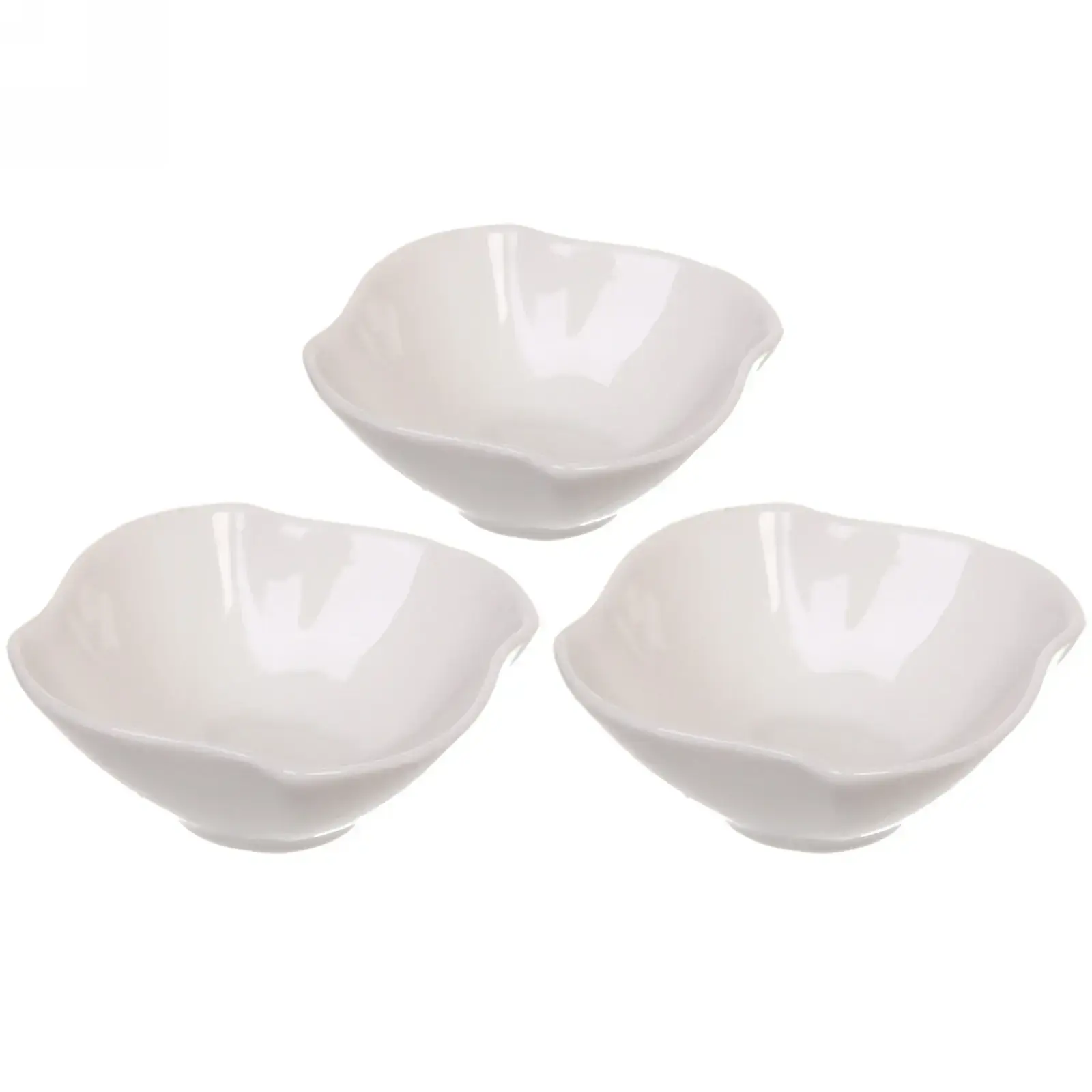 Набор состоит из трех соусников, каждый из которых имеет размеры 7х7х3 см. Они идеально подходят для подачи различных соусов, закусок или даже десертов. Благодаря своему дизайну, соусники легко комбинируются с другими элементами сервировки, что делает их универсальными для любого случая — от повседневного ужина до праздничного стола.