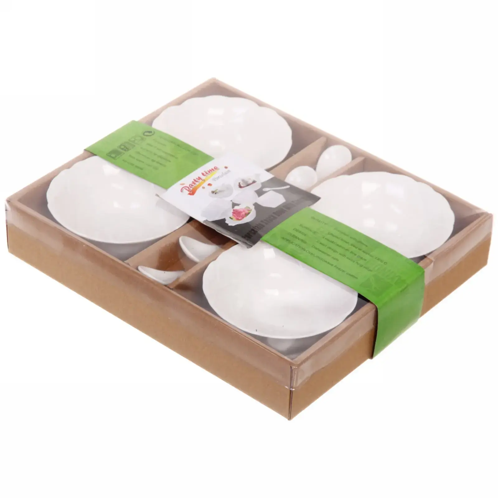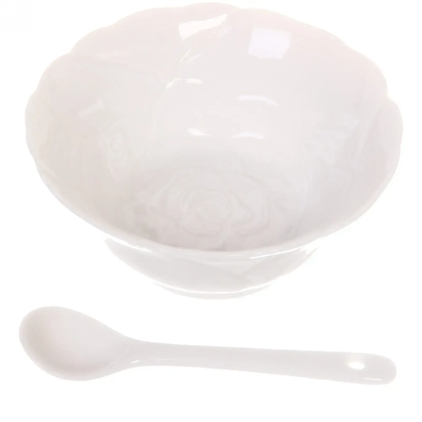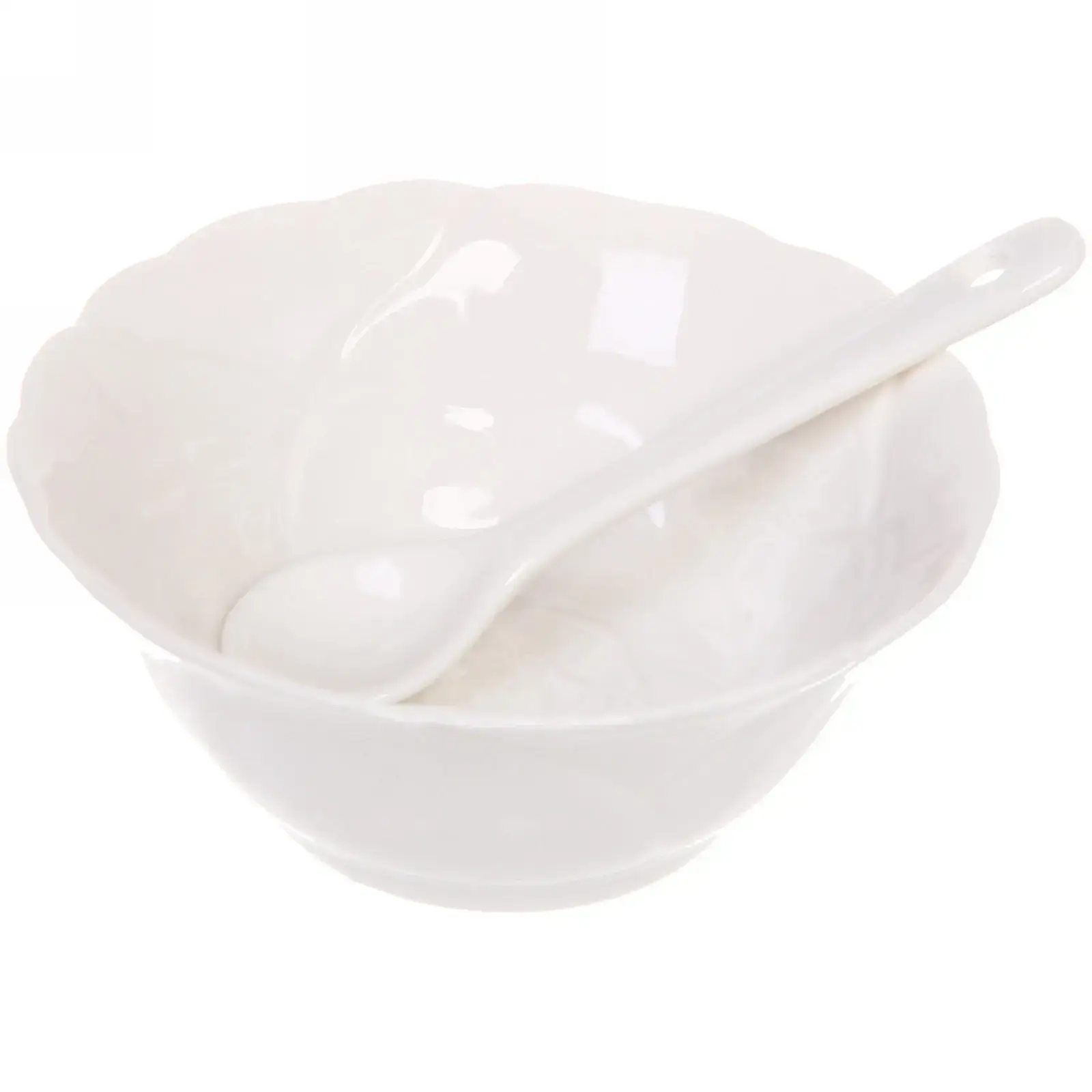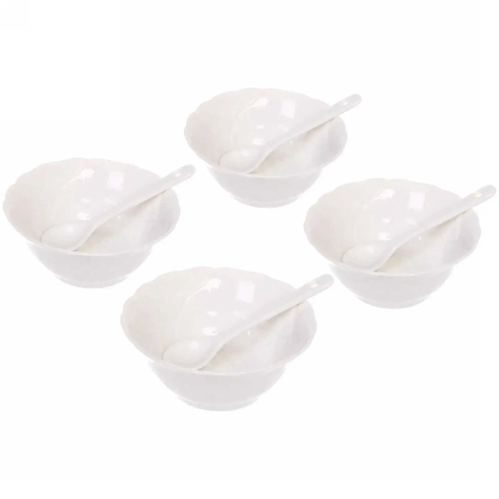 Набор соусников «White magic», 4шт с керамическими ложками, 120мл, белые, рифлёный край