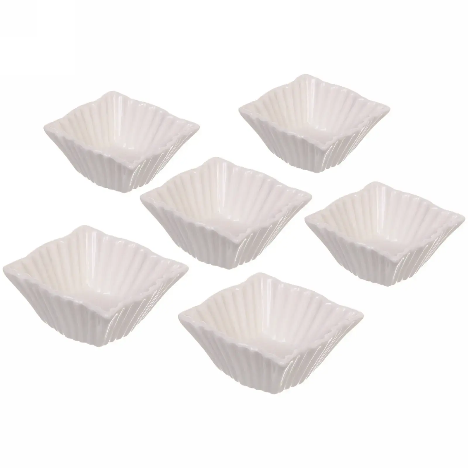 Материал — керамика, объем каждого соусника — 100 мл, размеры не указаны, форма квадратная с плавными закруглениями. Такой набор украсит любой стол и сделает сервировку более функциональной и стильной.