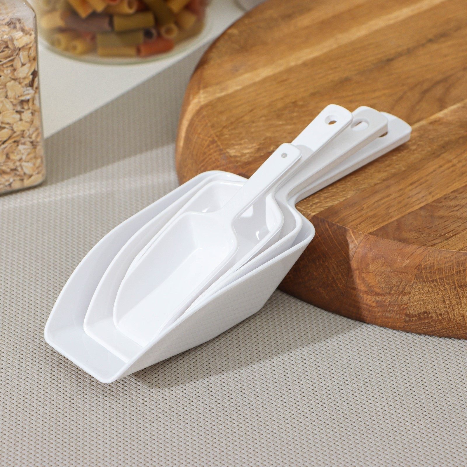 Ложки выполнены из прочного пластика, устойчивого к механическим повреждениям. Их гладкая поверхность легко моется, а компактные размеры позволяют хранить их даже на небольшой кухне. Благодаря продуманной конструкции они не деформируются при использовании.