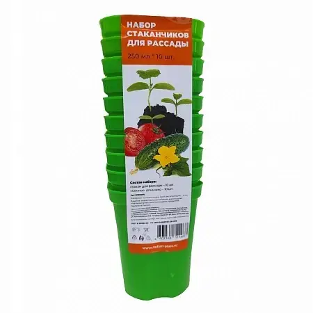Каждый стаканчик имеет объем 250 мл, что идеально подходит для начального этапа роста растений. Они выполнены из качественного пластика, который обеспечивает долговечность и надежность. Набор включает 10 стаканчиков, что позволяет вам высаживать сразу несколько растений. Не упустите возможность сделать ваш сад более зеленым и красивым с помощью нашего набора стаканчиков для рассады!
