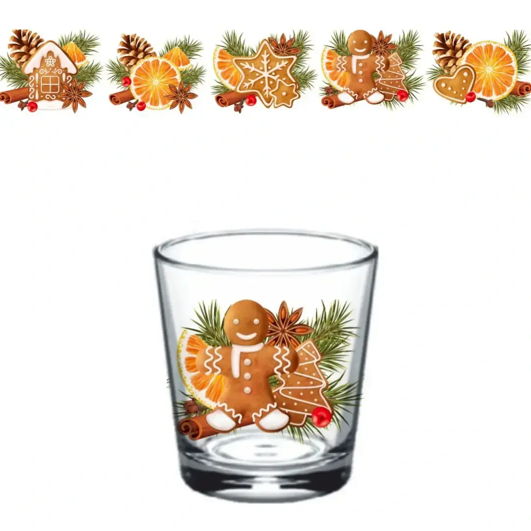 Погрузитесь в атмосферу праздника с набором стаканов, который добавит уют и радость в ваши торжества. Эти стаканы идеально подходят для новогодних вечеринок, семейных встреч и уютных вечеров с друзьями. Каждый стакан оформлен уникальным рисунком, который включает в себя пряничного человека, зеленые веточки ели, корицу и красные ягодки, создавая тем самым праздничное настроение.