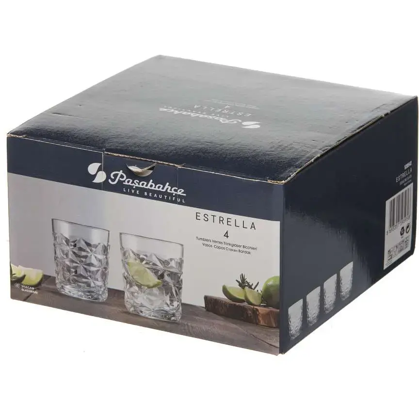 Добавьте изысканности вашему столу с набором прозрачных стаканов 'ESTRELLA'. Их уникальный рельефный дизайн и удобный объем 305 мл делают их идеальными для любых напитков.