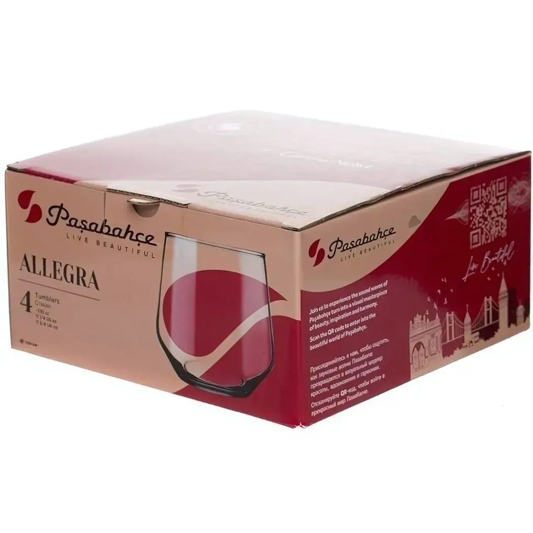 Набор из 4 прозрачных стаканов серии «Аллегра» сочетает практичность и стильный дизайн. Идеальный выбор для семейных обедов, вечеринок с друзьями или романтических ужинов — ваши напитки заиграют новыми красками в этой посуде.