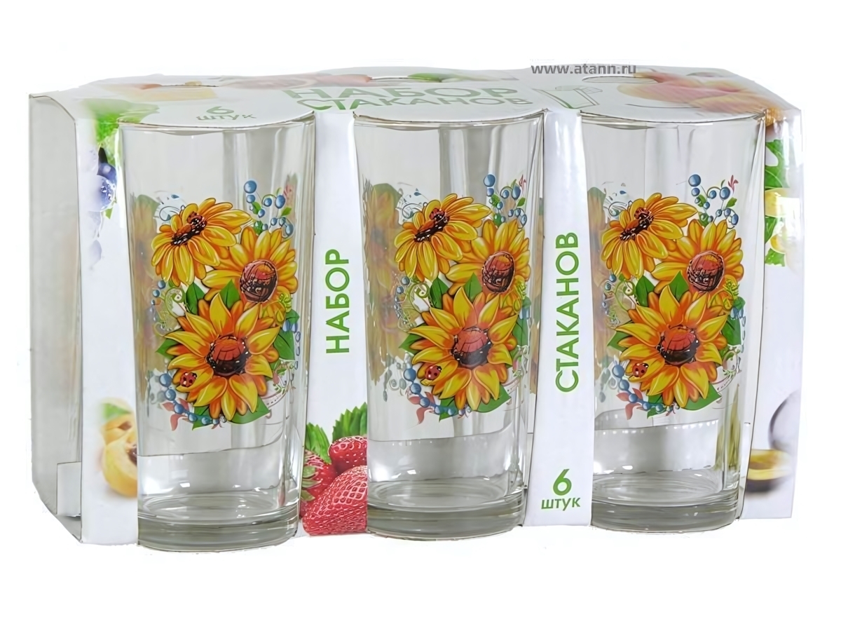 Этот набор стаканов объемом 230 мл станет практичным и эстетичным дополнением вашей кухни. Прозрачное стекло с утолщённым дном обеспечивает надежность и устойчивость, а красочный рисунок с жёлтыми подсолнухами, дополненными яркими деталями, создаёт солнечное настроение при каждом использовании.