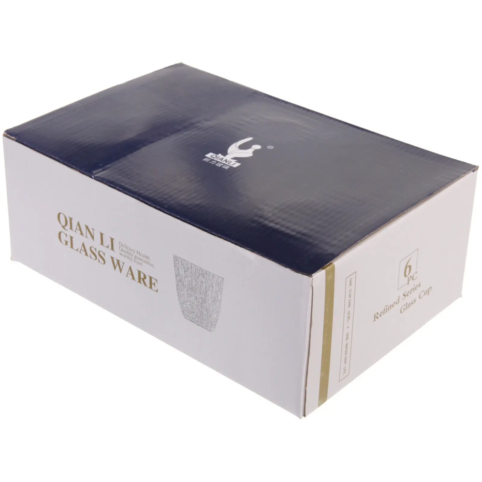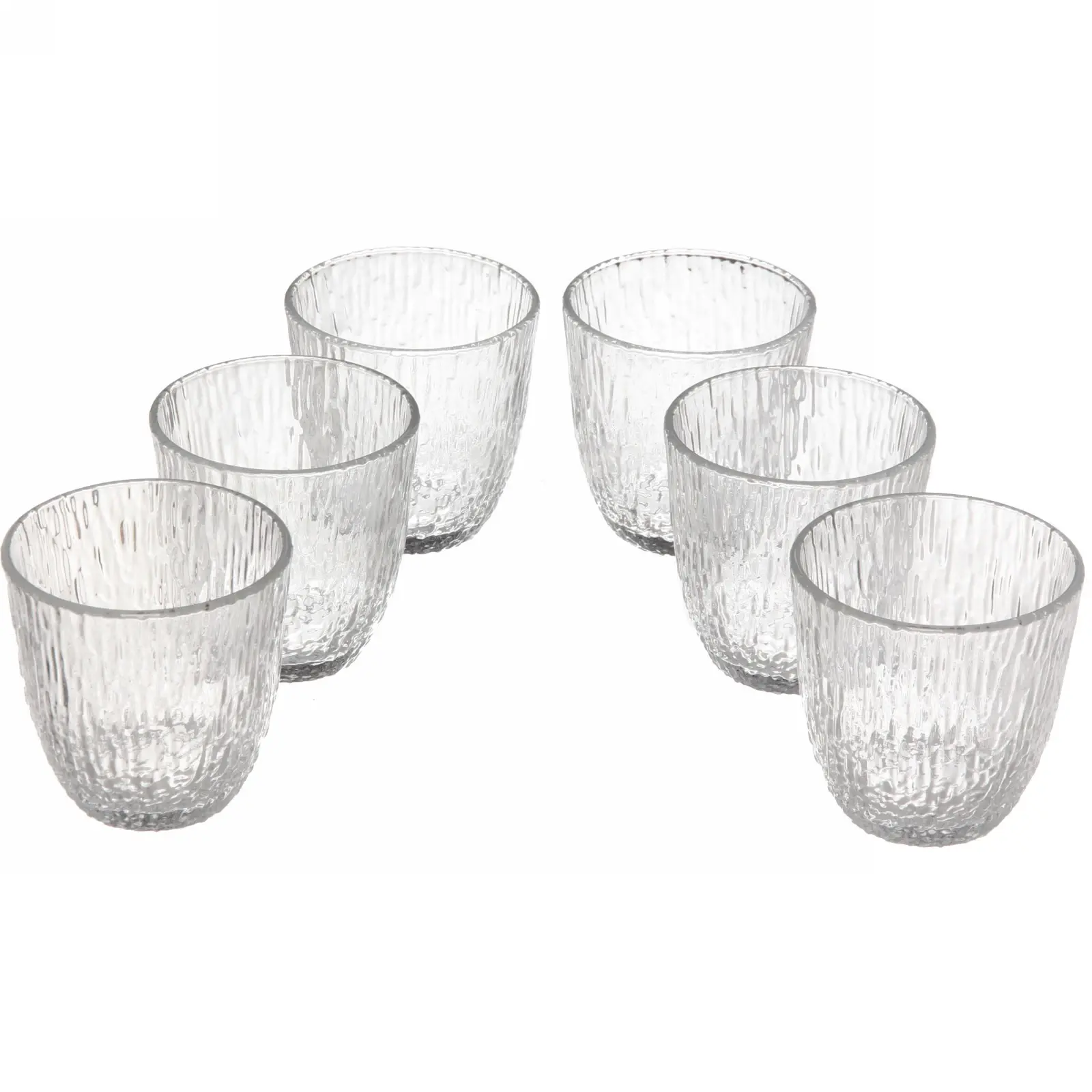 Материал: стекло, класс прочности. Размеры: диаметр у основания около 7 см, высота — около 10 см. Упаковка включает 6 одинаковых стаканов, идеально подходящих для ежедневного использования.
