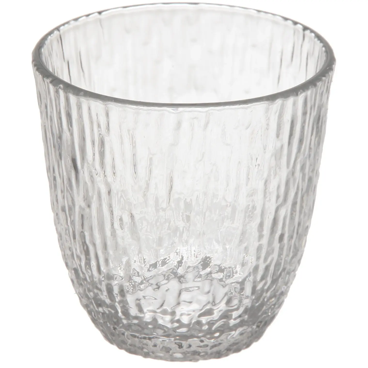 Этот стеклянный стакан объемом 300 мл идеально подойдет для подачи напитков как дома, так и в кафе или ресторане. Его прозрачность и рельефная текстура создают эстетический эффект, подчеркивающий вкус ваших напитков и придающие сервировке изысканности.