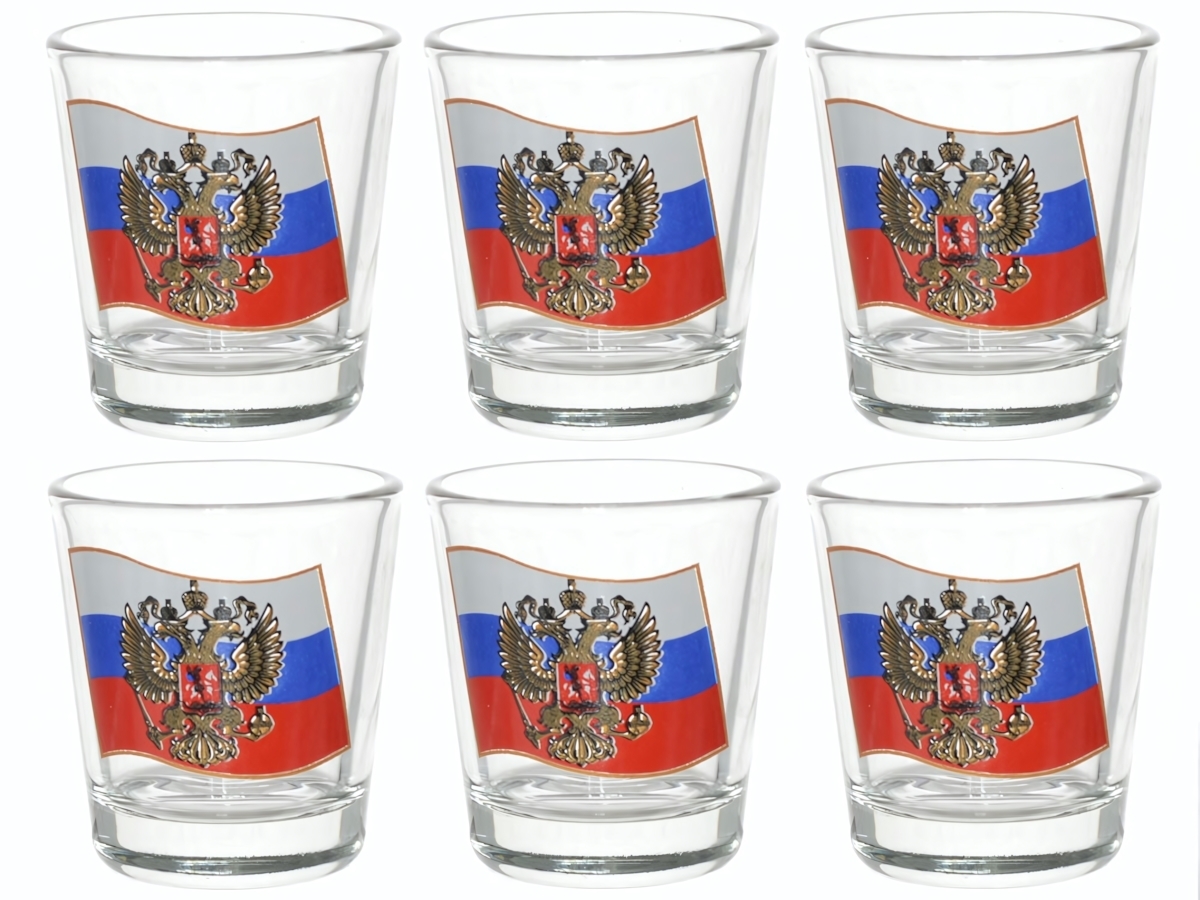 Этот элегантный набор стопок создан для ценителей стиля, качества и символичности. Украшенные государственным флагом и гербом России, они станут ярким акцентом праздничного стола, подчеркнут уважение к традициям и создадут особую атмосферу на любом мероприятии.