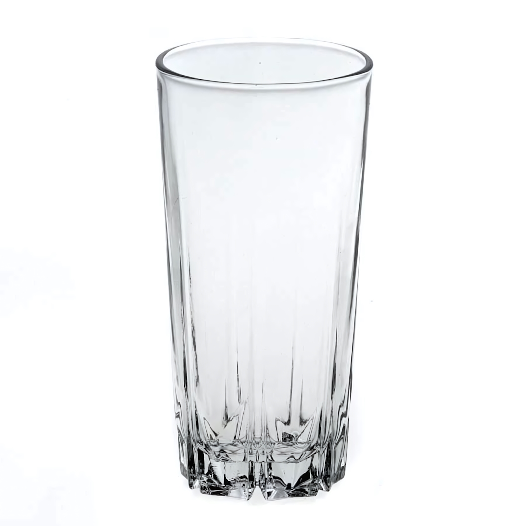 Нижняя половина стакана украшена вертикальными гранями, образующими элегантный геометрический рисунок. Гладкая верхняя часть позволяет наслаждаться цветом напитка и привлекательно подает содержимое.