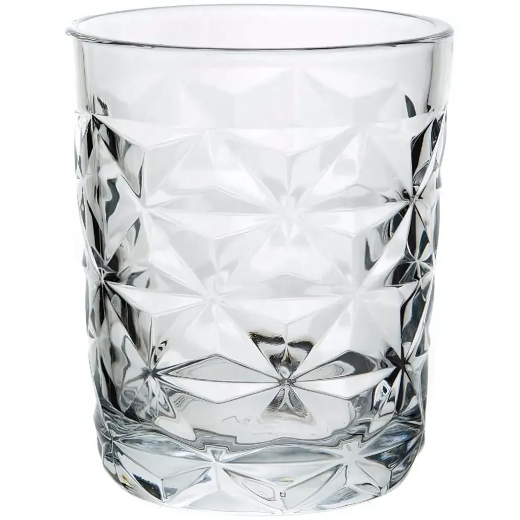 Каждый стакан имеет объем 360 мл, что делает его идеальным для различных напитков. Рельефный рисунок состоит из многогранных звезд и ромбов, что придает стаканам уникальный вид. Эти стаканы легко мыть и они подходят для использования в посудомоечной машине, что экономит ваше время на уборку.