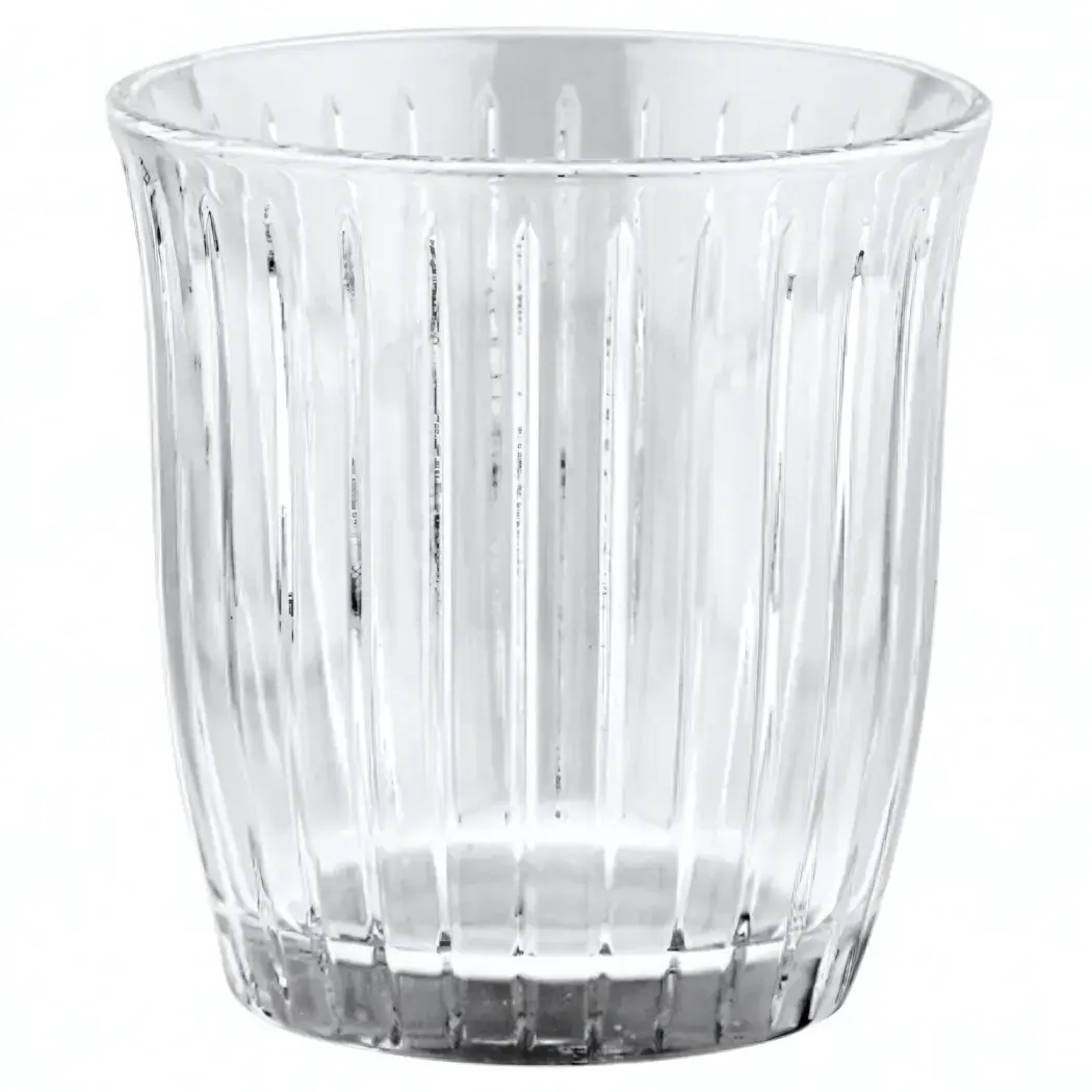 Благодаря устойчивому основанию стаканы не опрокидываются. Ребристая поверхность не только украшает изделие, но и предотвращает скольжение в руке. Стекло легко моется и не впитывает запахи, что гарантирует длительное сохранение первоначального вида.