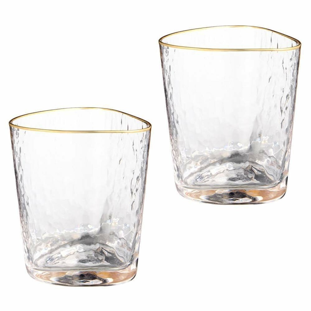 Стакан "Rocky" 2 шт, 380 мл, прозрачный, золотой кант — стильный набор для сервировки, подарочная коробка