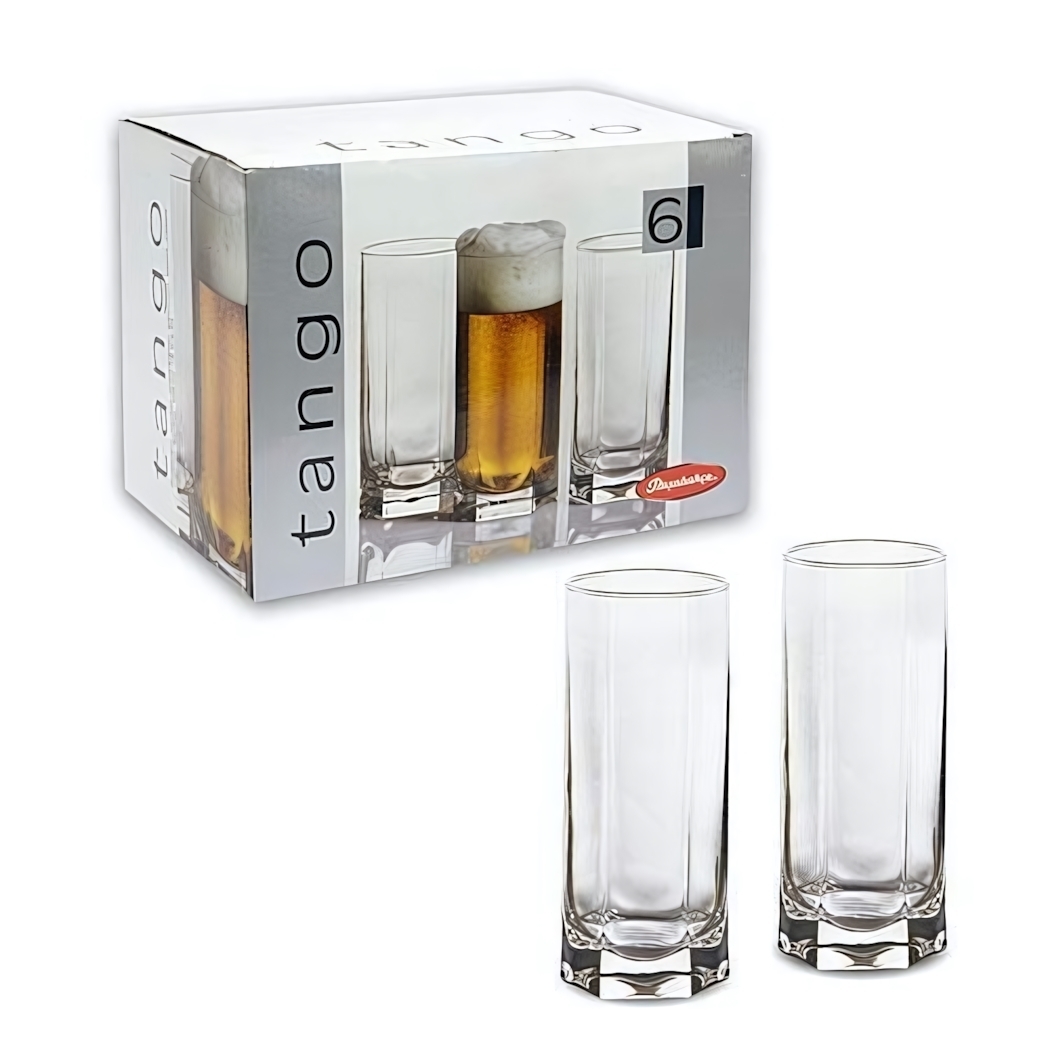 Погрузитесь в мир комфорта и стиля с набором стаканов "Tango". Эти высокие стеклянные стаканы не только прекрасно выглядят, но и обеспечивают максимальное удобство при использовании. Каждый стакан объемом 330 мл идеально подходит для подачи воды, сока или даже пива, что делает их универсальным решением для любого стола.