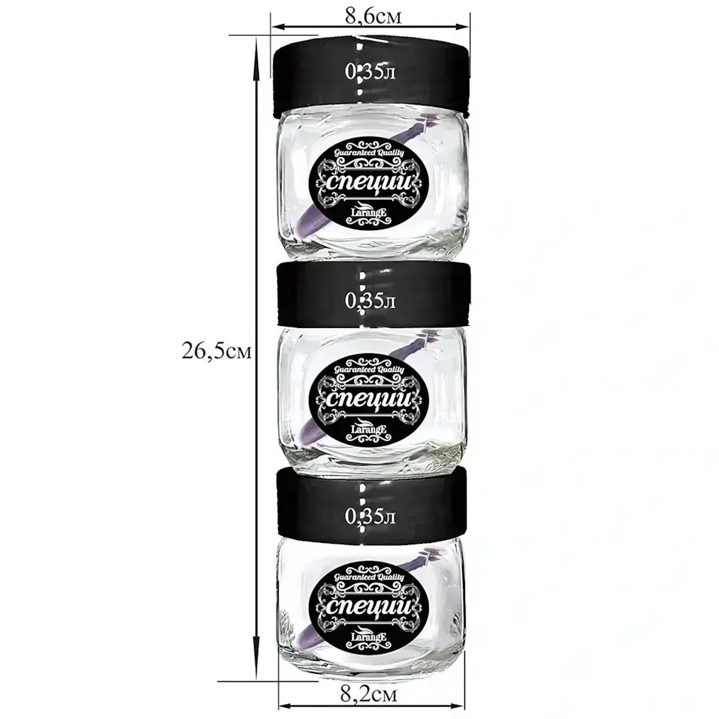 Каждая банка объемом 350 мл имеет высоту 26.5 см с диаметром верхней части 8.6 см. Округлые углы и прозрачные стенки обеспечивают удобное использование и быстрый визуальный поиск содержимого.
