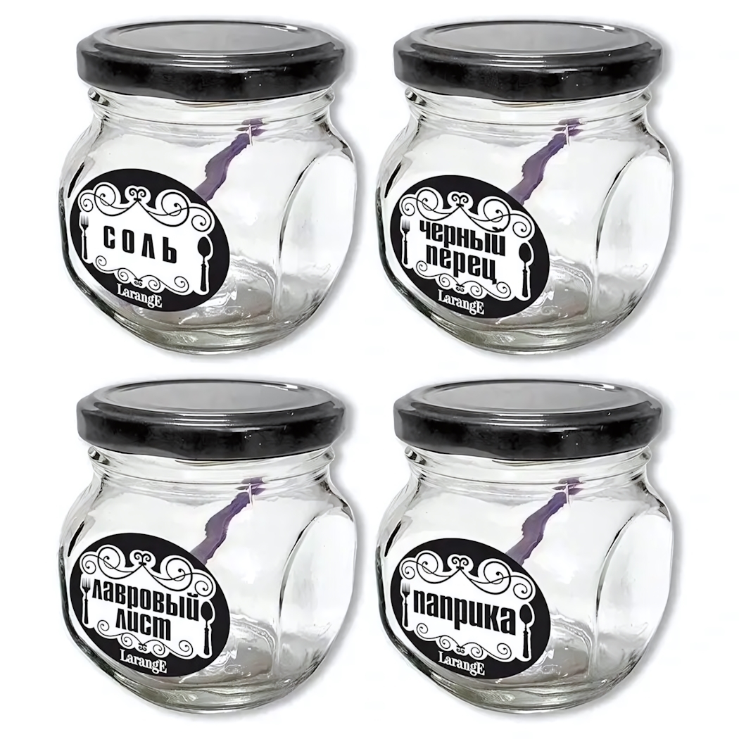 Каждая баночка выполнена из прочного стекла, устойчивого к механическим повреждениям. Металлические крышки плотно закрываются, защищая содержимое от влаги и потери аромата. Единый стиль оформления создаст аккуратный вид на вашей кухне.
