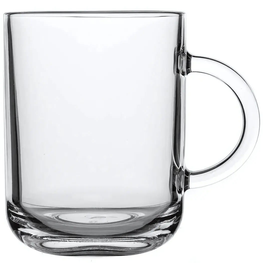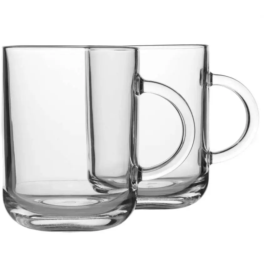 Кружки выполнены из высококачественного прозрачного стекла с гладкой поверхностью. Цилиндрическая форма обеспечивает устойчивость, а эргономичные ручки-кольца гарантируют удобный захват.