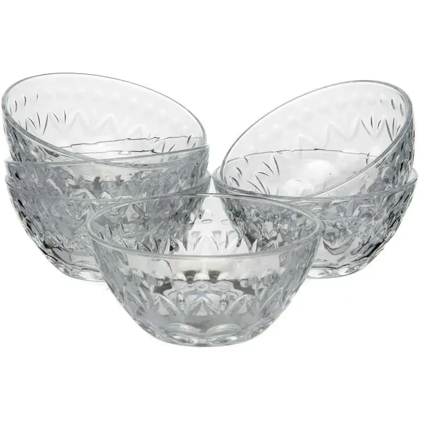 В набор входят 6 салатников, каждый из которых имеет объем 190 мл. Они выполнены из прозрачного стекла, что позволяет видеть содержимое и делает их идеальными для сервировки. Размеры и форма салатников делают их универсальными для использования в любых случаях.
