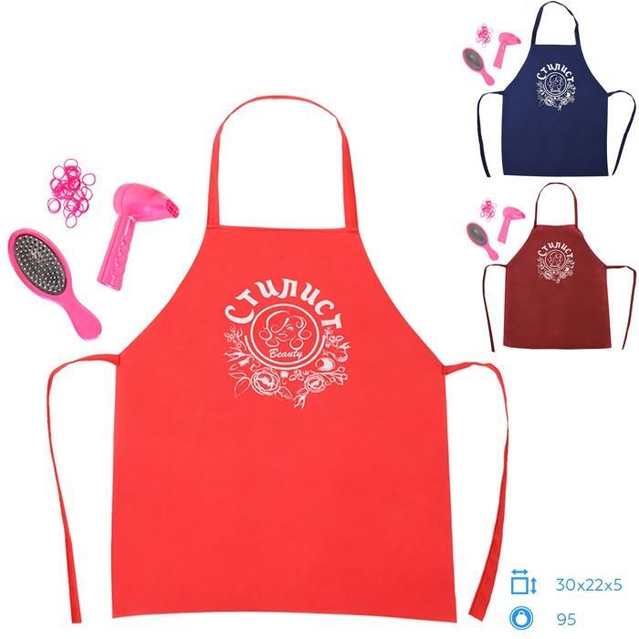 Размер упаковки составляет 23х29х2 см, что делает набор компактным и удобным для хранения. Фартук представлен в различных цветах, включая красный, синий и бордовый, что добавляет разнообразия в игру. Набор упакован в пакет, что облегчает его транспортировку и хранение.