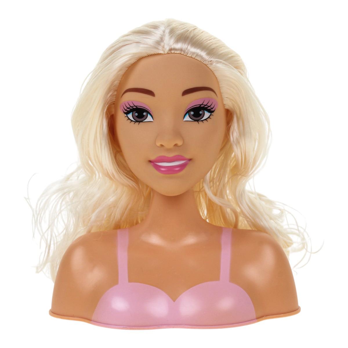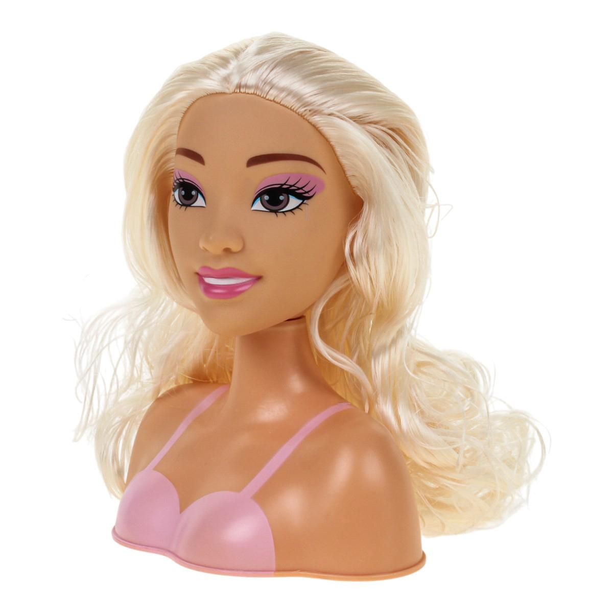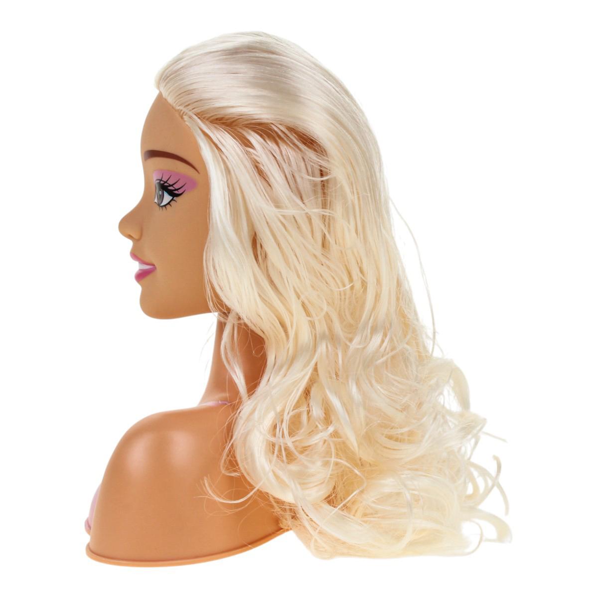 - Кукла-манекен с головой и плечами, с длинными волнистыми волосами, которые легко расчесывать и укладывать. У куклы прорисованные черты лица с макияжем.