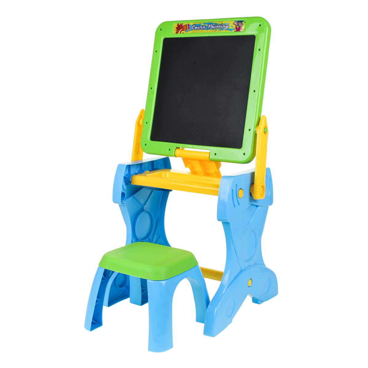 Удобный набор стол-мольберт со стулом помогает организовать комфортное пространство для рисования, обучения и игр. Конструкция 2 в 1 легко трансформируется из мольберта в стол, экономя место в детской комнате и позволяя использовать один предмет мебели для разных задач.
