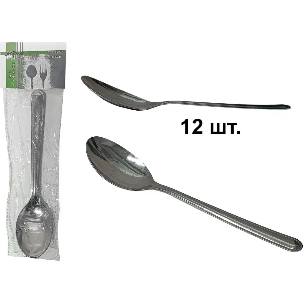12 одинаковых столовых приборов в индивидуальной упаковке. Все изделия прошли контроль качества — отсутствие заусенцев, идеальная симметрия и одинаковая масса каждой ложки (45±2 г).