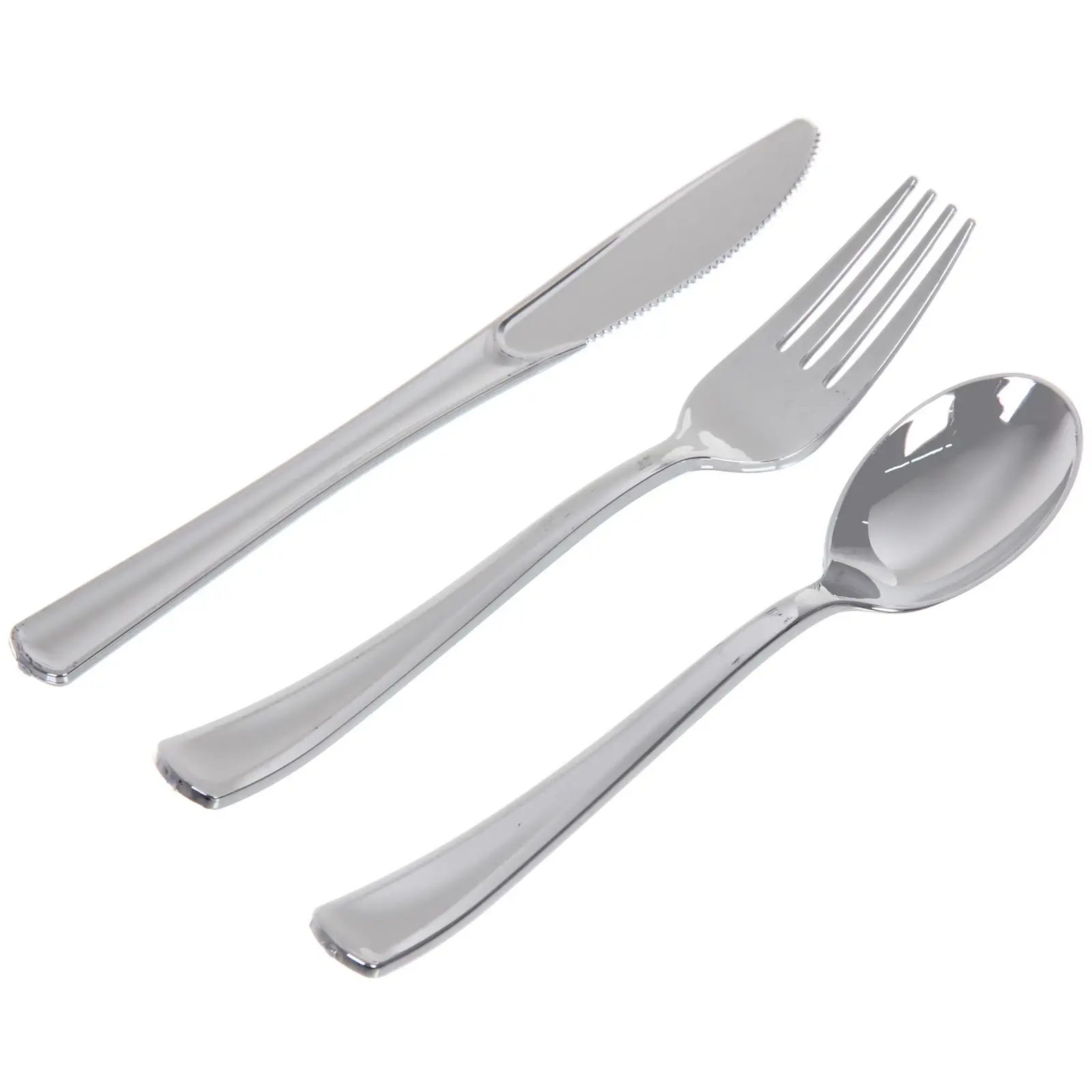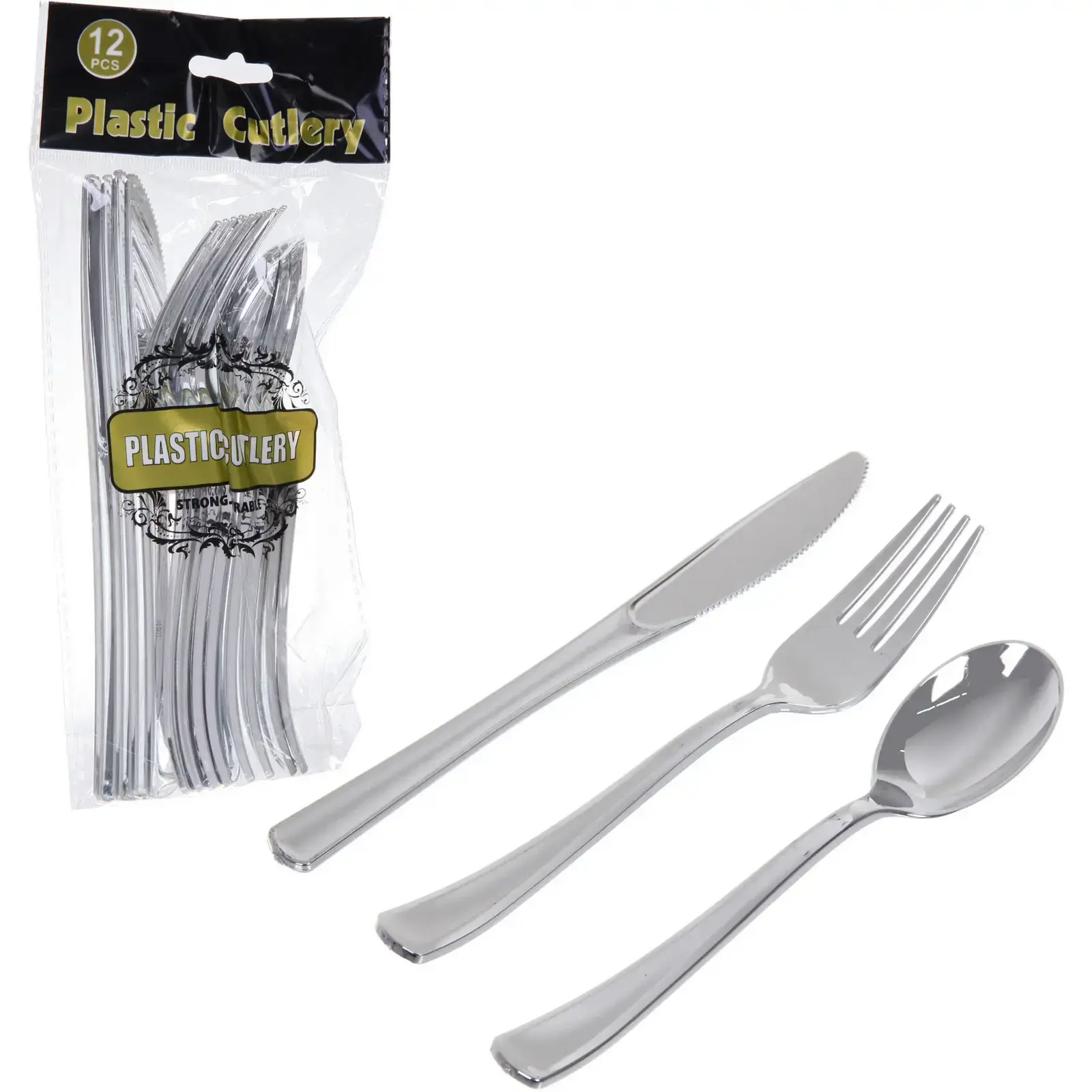 Комплект из 12 практичных приборов создаст безупречный комфорт на пикниках, фуршетах и семейных ужинах. Глянцевый серебристый дизайн сочетает элегантность с функциональностью, а прочный пластик выдерживает активное использование.