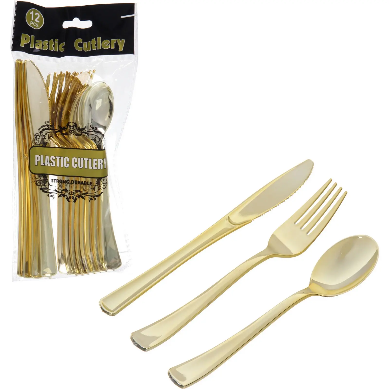 Набор столовых приборов "DOLCE VITA", 12 шт, золото, пластик