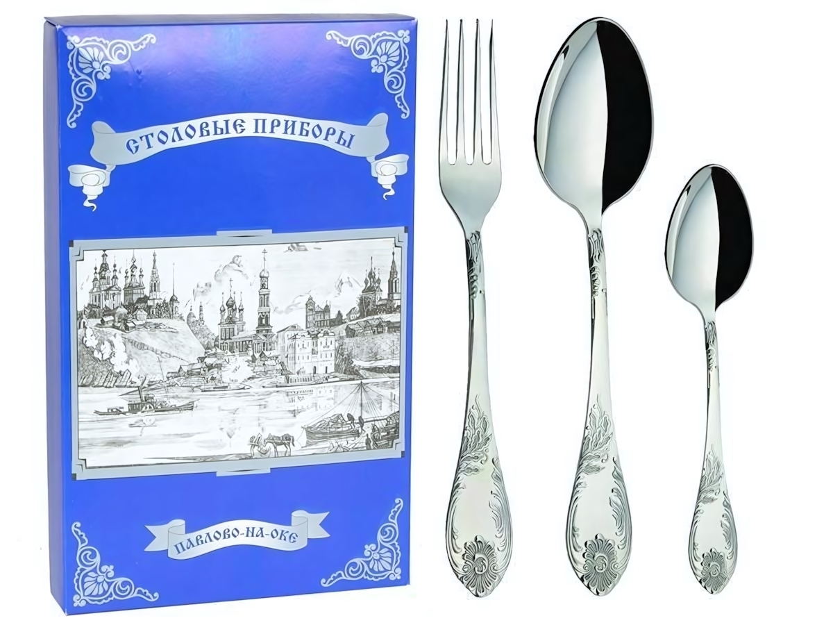 - 18 предметов: 6 столовых ложек, 6 вилок, 6 чайных ложек