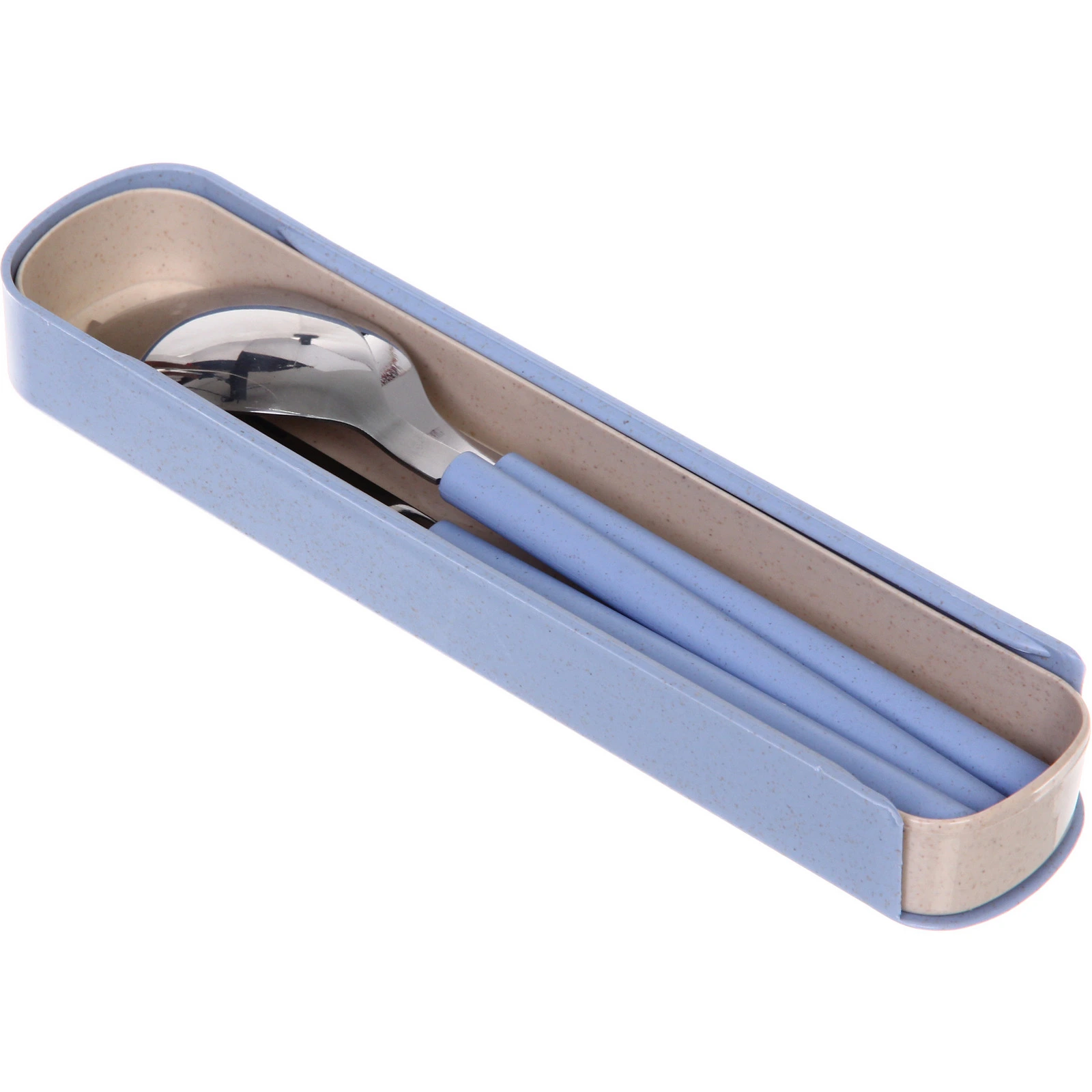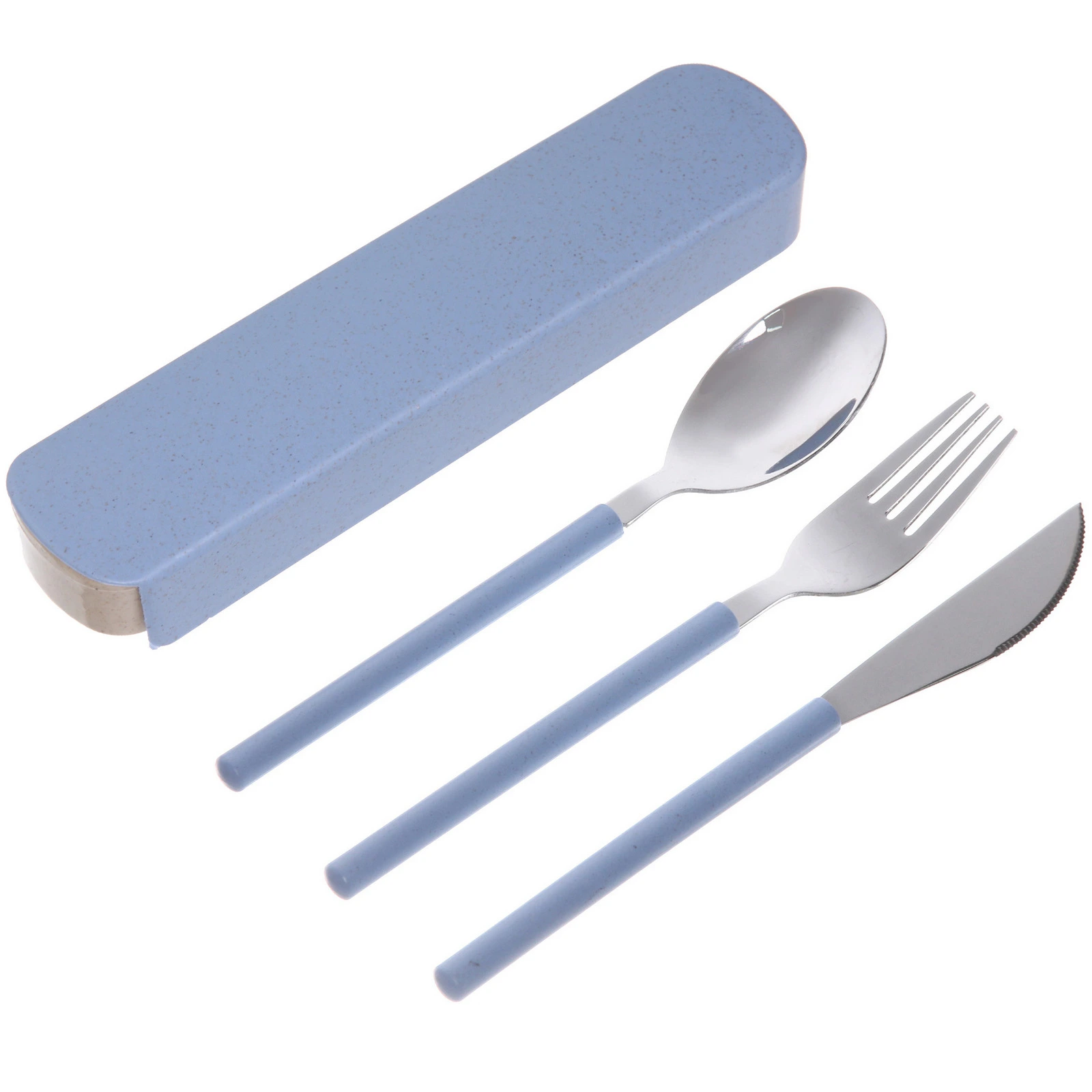 Комплект из трёх незаменимых предметов — ложки, вилки и ножа — станет вашим верным спутником на пикниках, в поездках или на работе. Удобный футляр защитит приборы от повреждений и загрязнений, а эргономичные ручки приятного голубого оттенка сделают каждый приём пищи более комфортным.