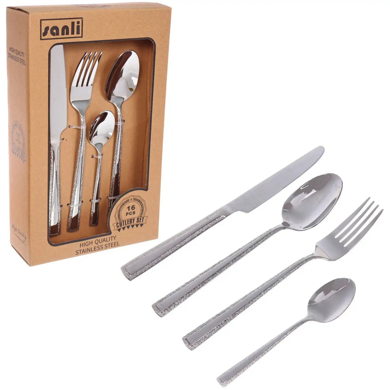 Набор столовых приборов «SANLI», 16 предметов, нержавеющая сталь, серебристый цвет, узорчатые ручки