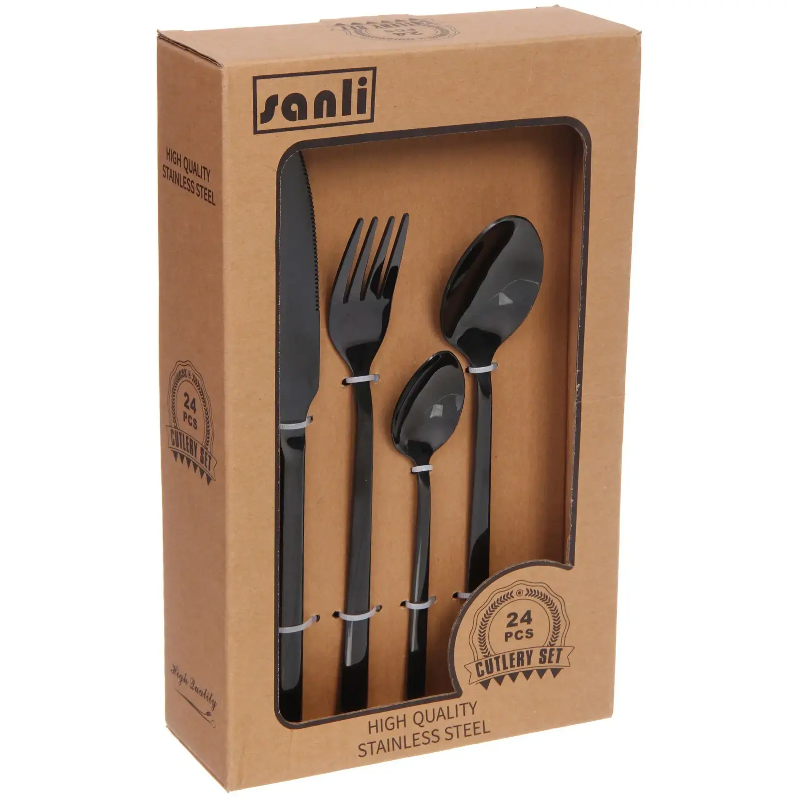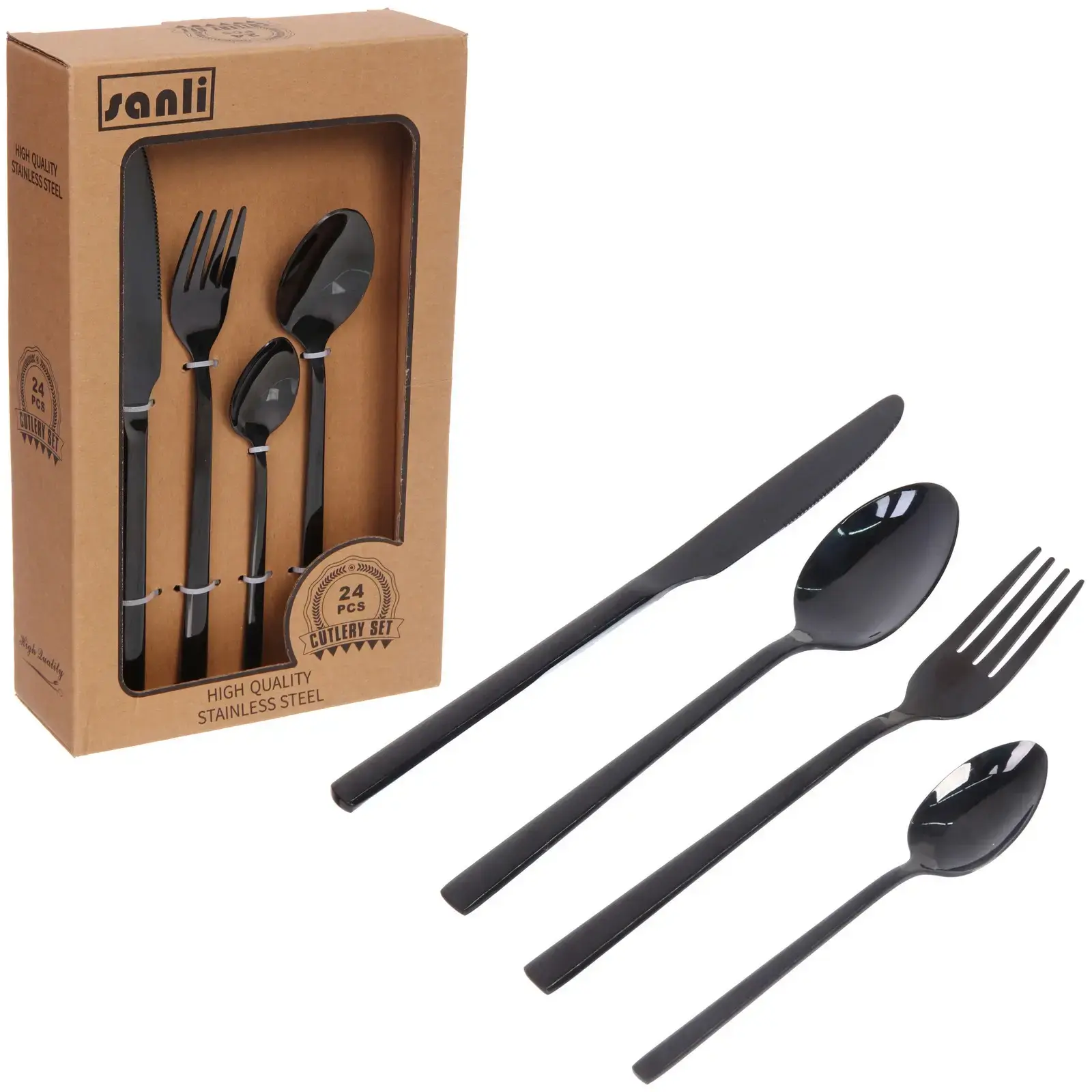 Набор столовых приборов 'SANLI' 24шт, черный, нержавеющая сталь