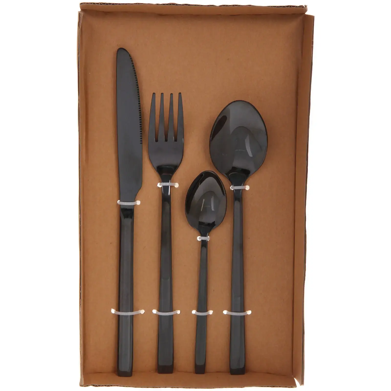 Количество предметов: 24 штуки (6 ножей, 6 вилок, 6 столовых ложек, 6 чайных ложек)