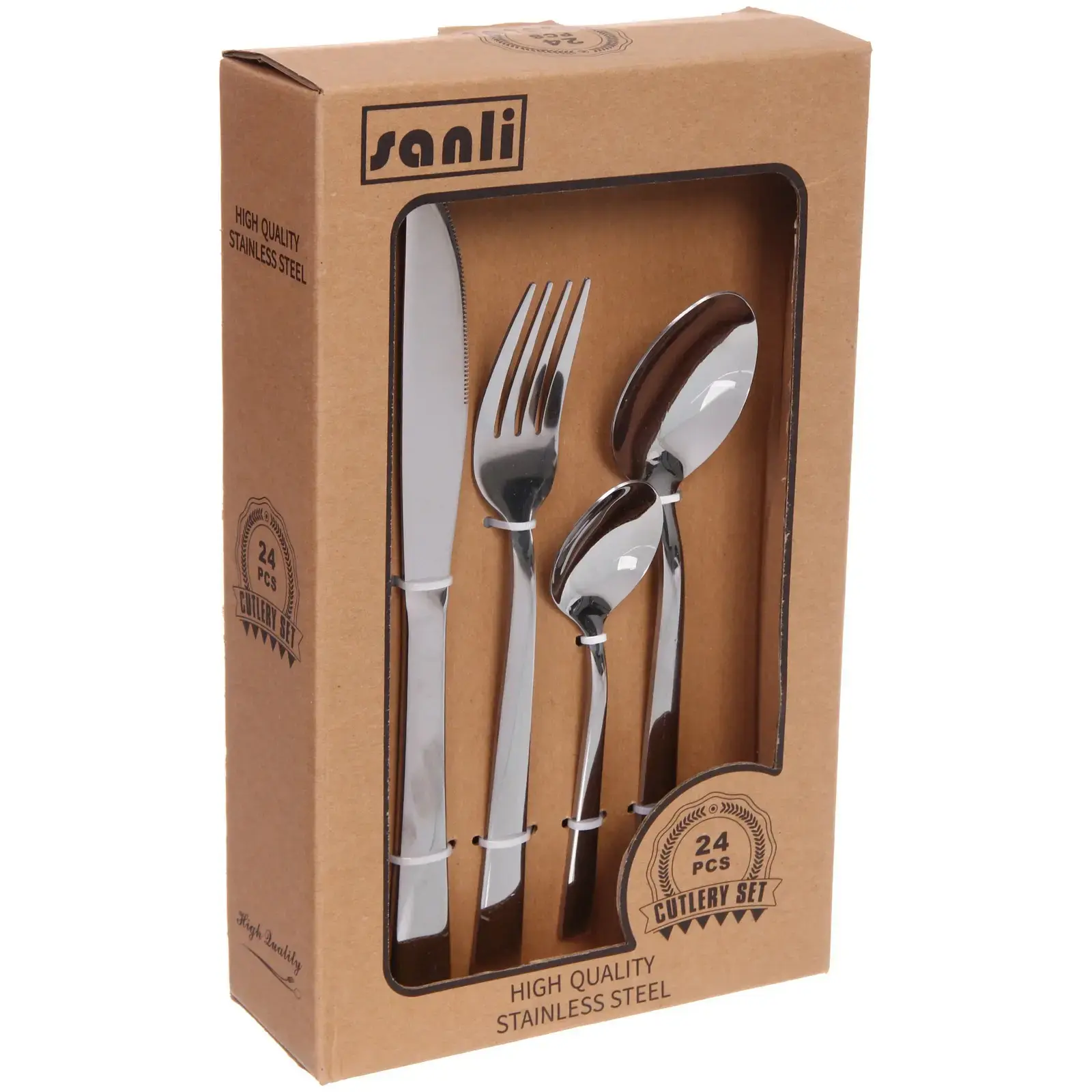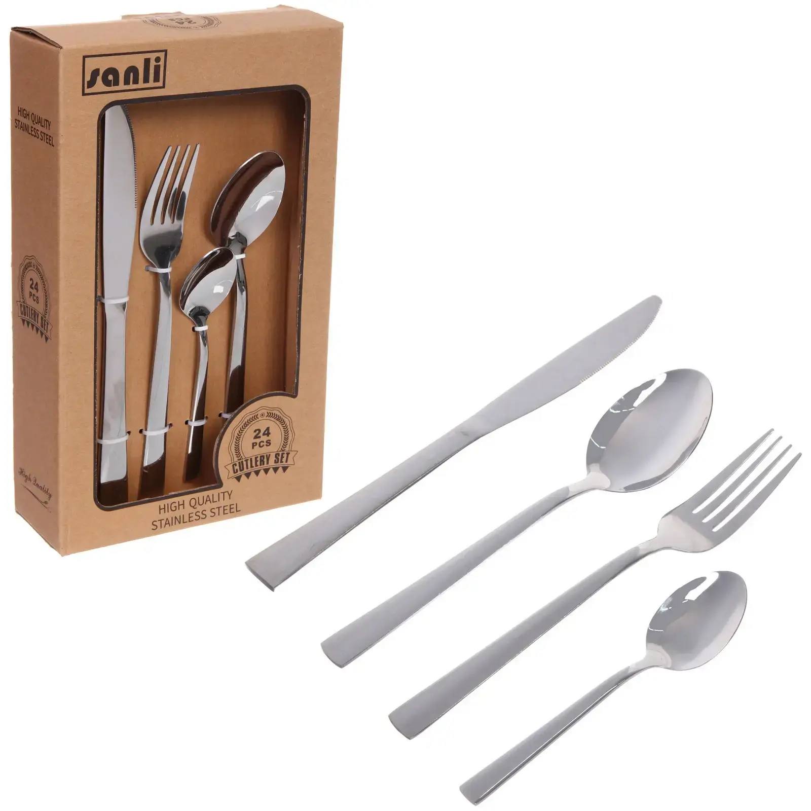 Набор столовых приборов «SANLI» 24шт, прямая ручка, цвет серебро, нержавеющая сталь