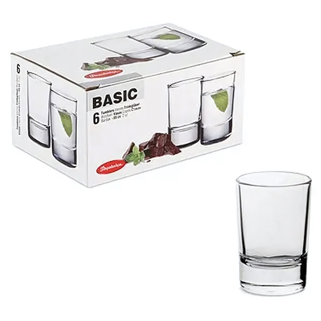 Набор стеклянных стопок «БЕЙЗИК», 6 шт. по 55 мл, для коктейлей и напитков