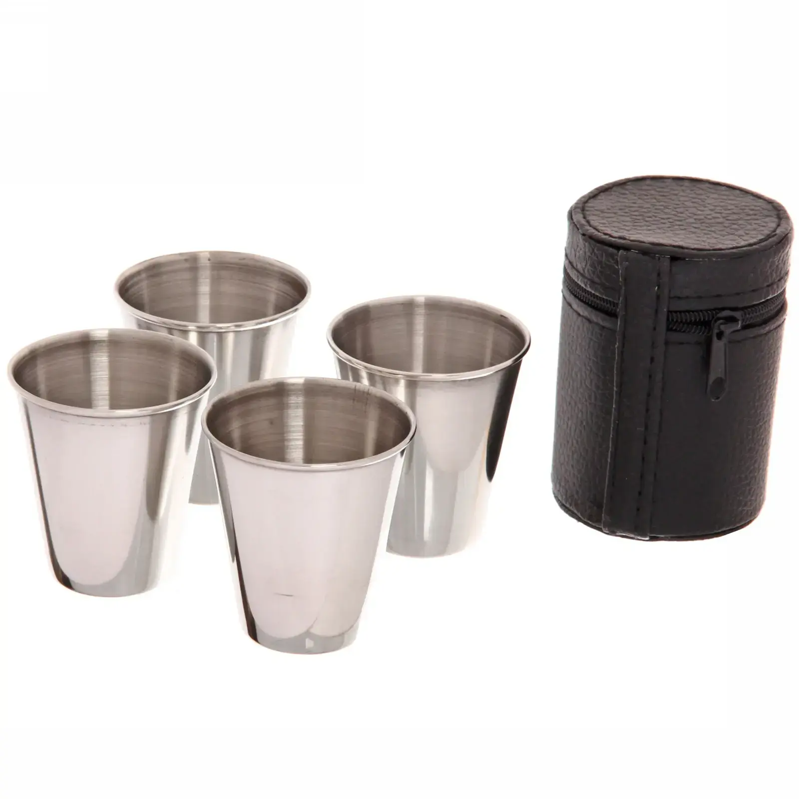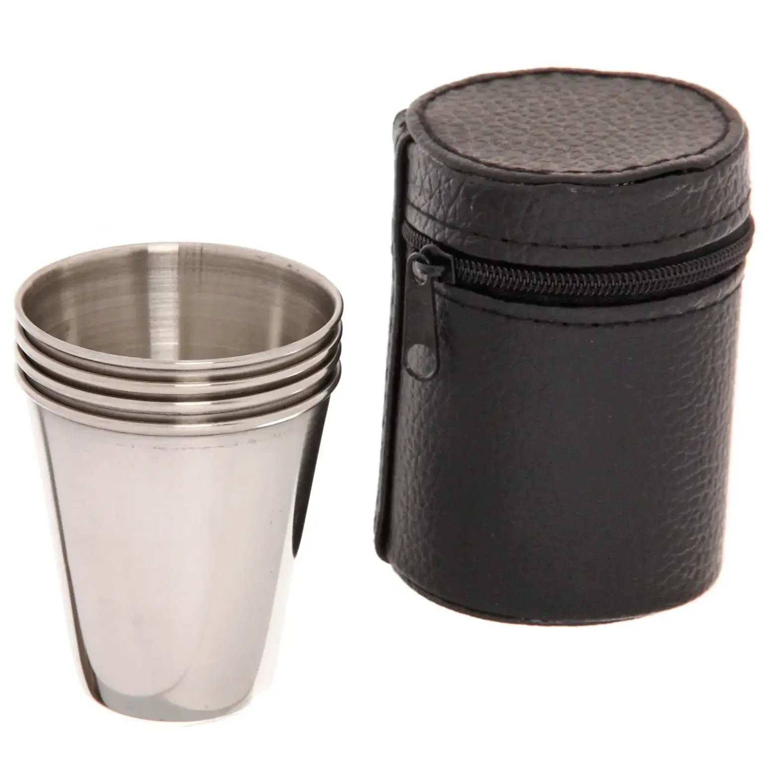 Набор стопок туристических 4шт, нержавеющая сталь, 80 мл, с кейсом для хранения