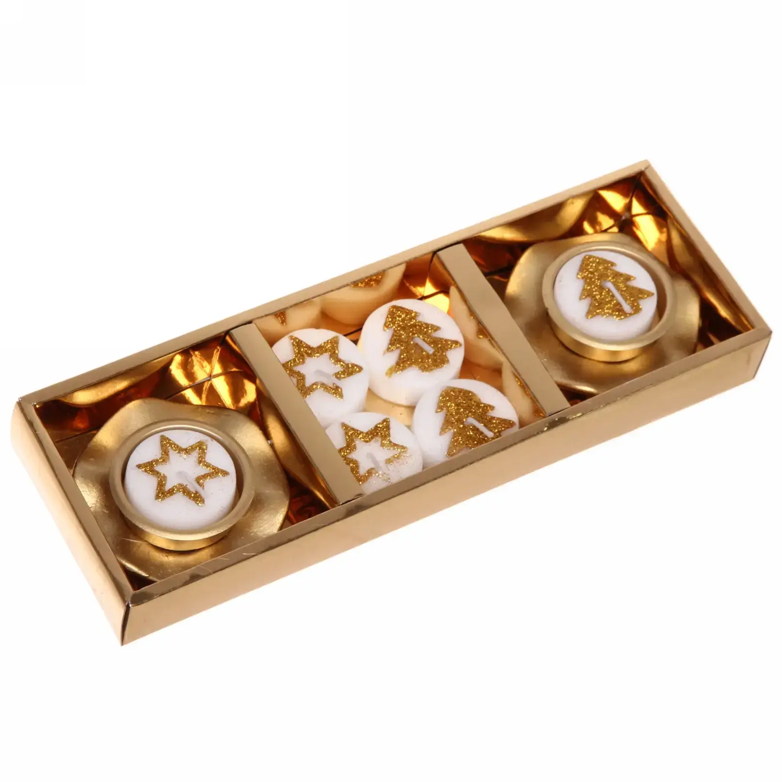 - Четыре уникальные свечи: две в форме звезды и две в форме елки.