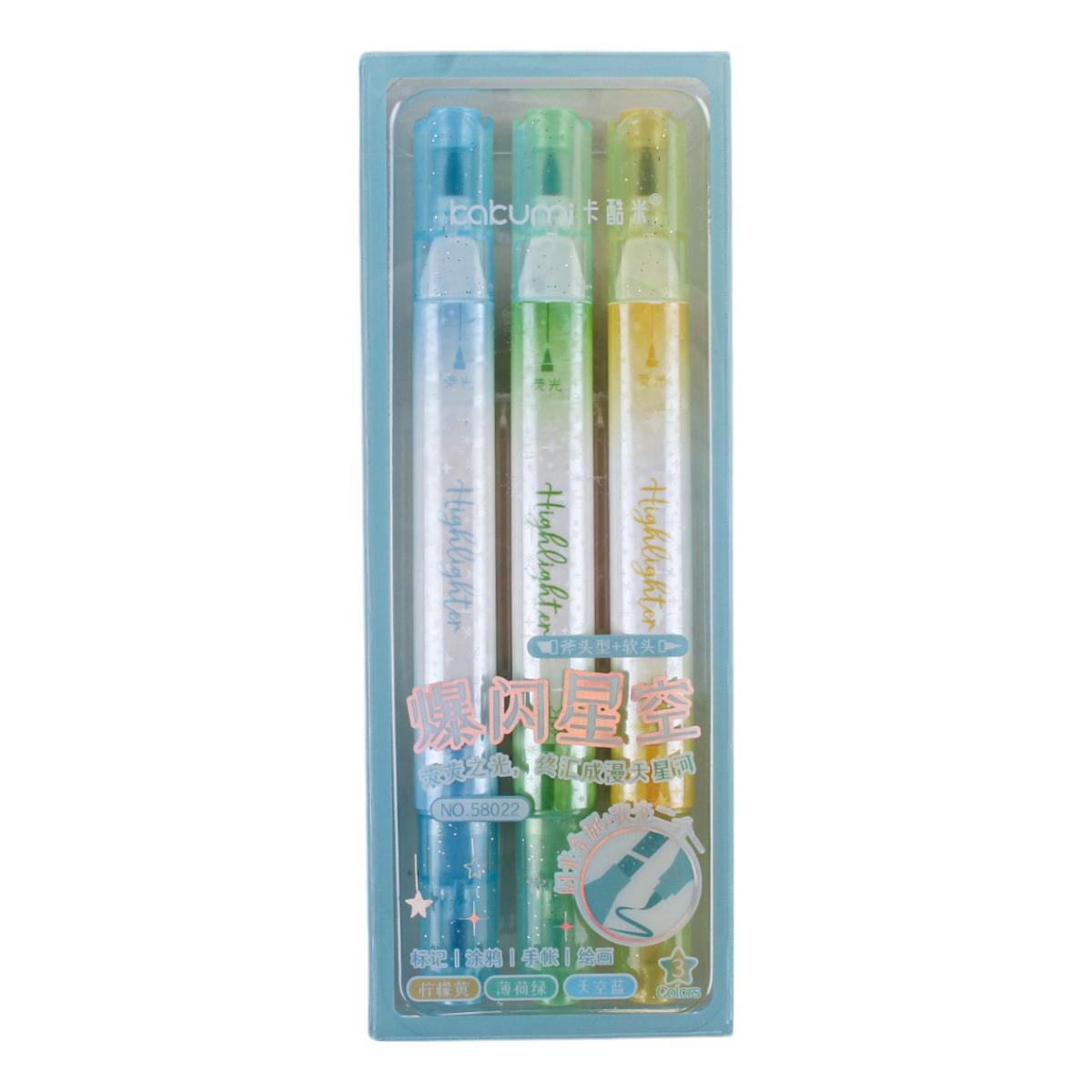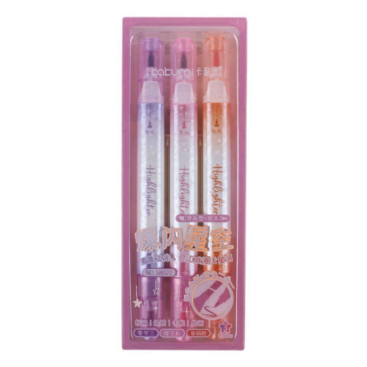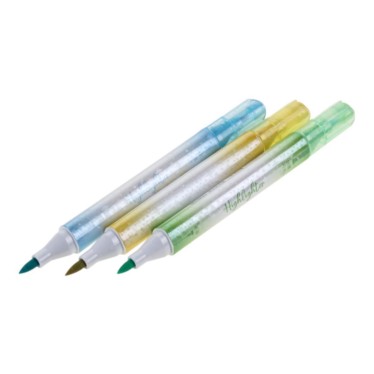 Текстовыделитель двусторонний 3шт. кисточка/пастель + блестки, 14,5×1 см, цвет в ассортименте, яркая раскраска