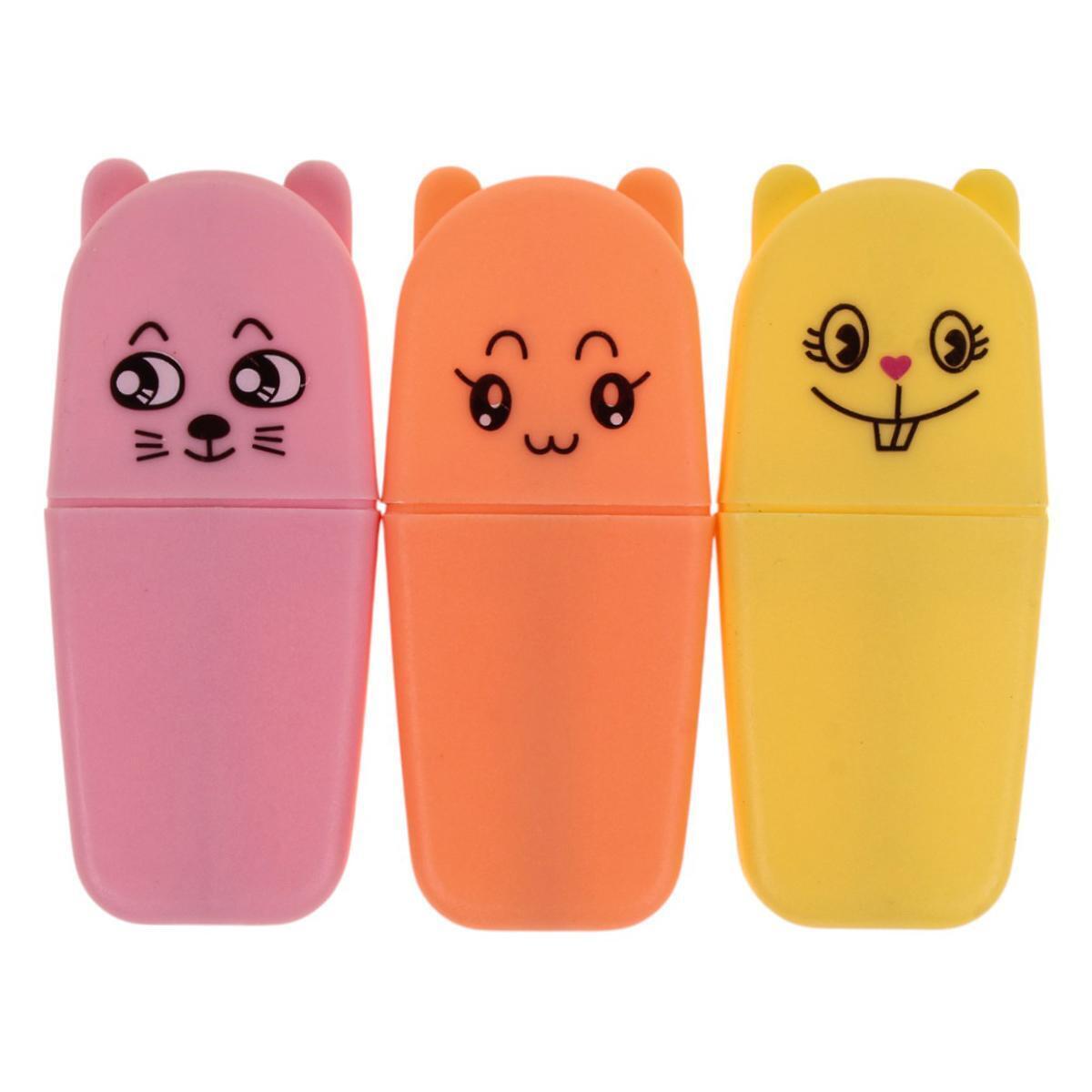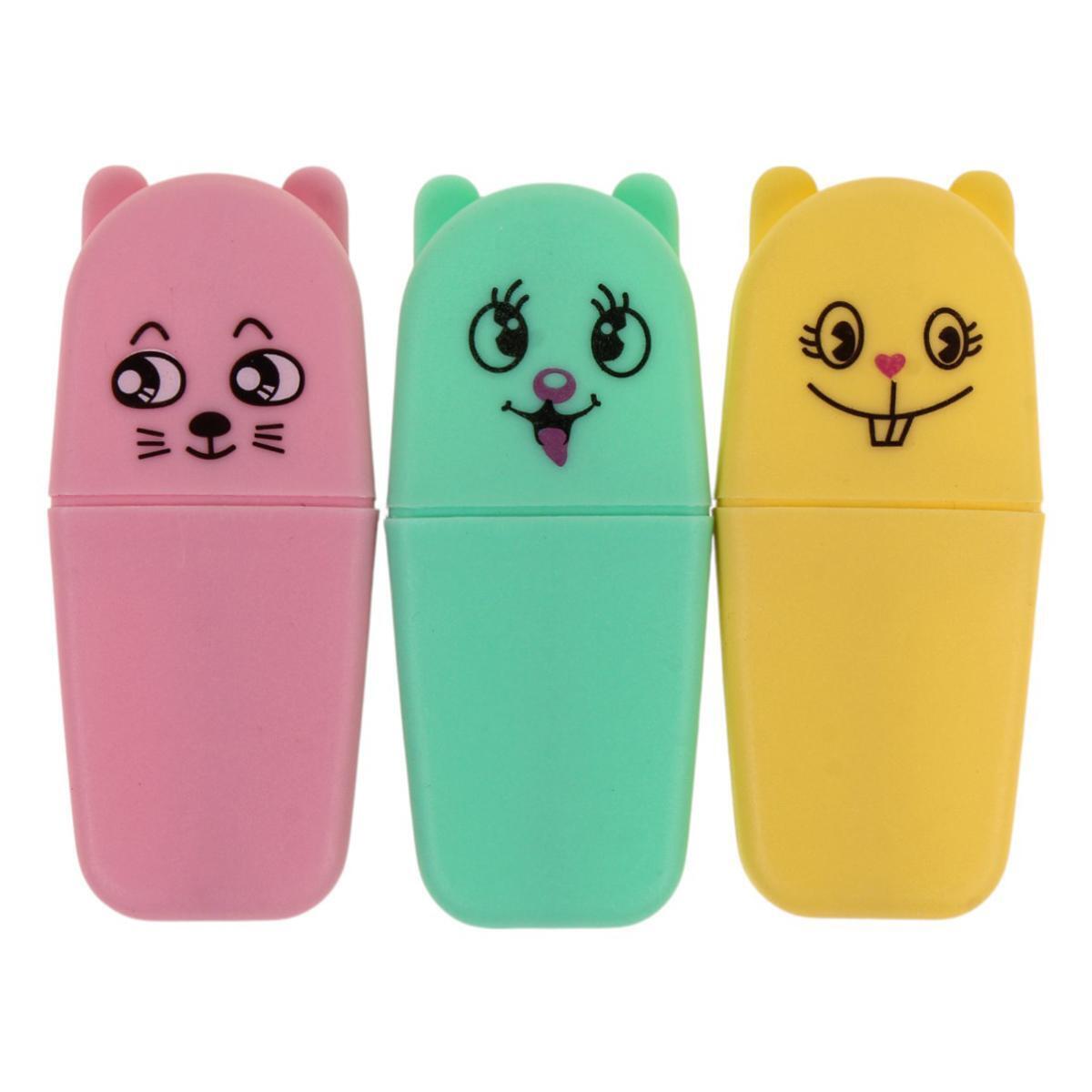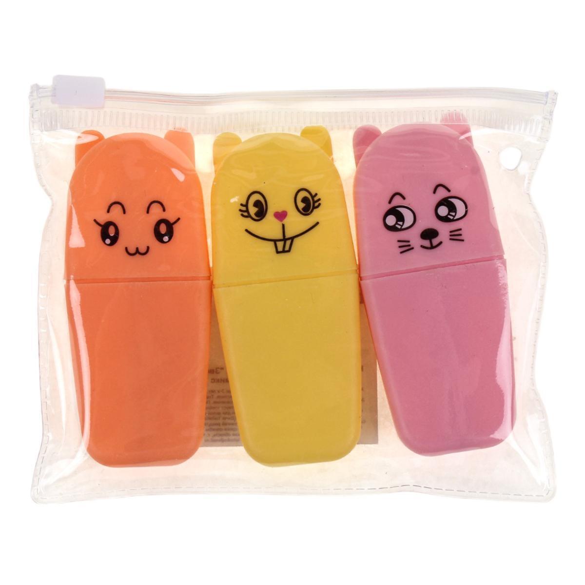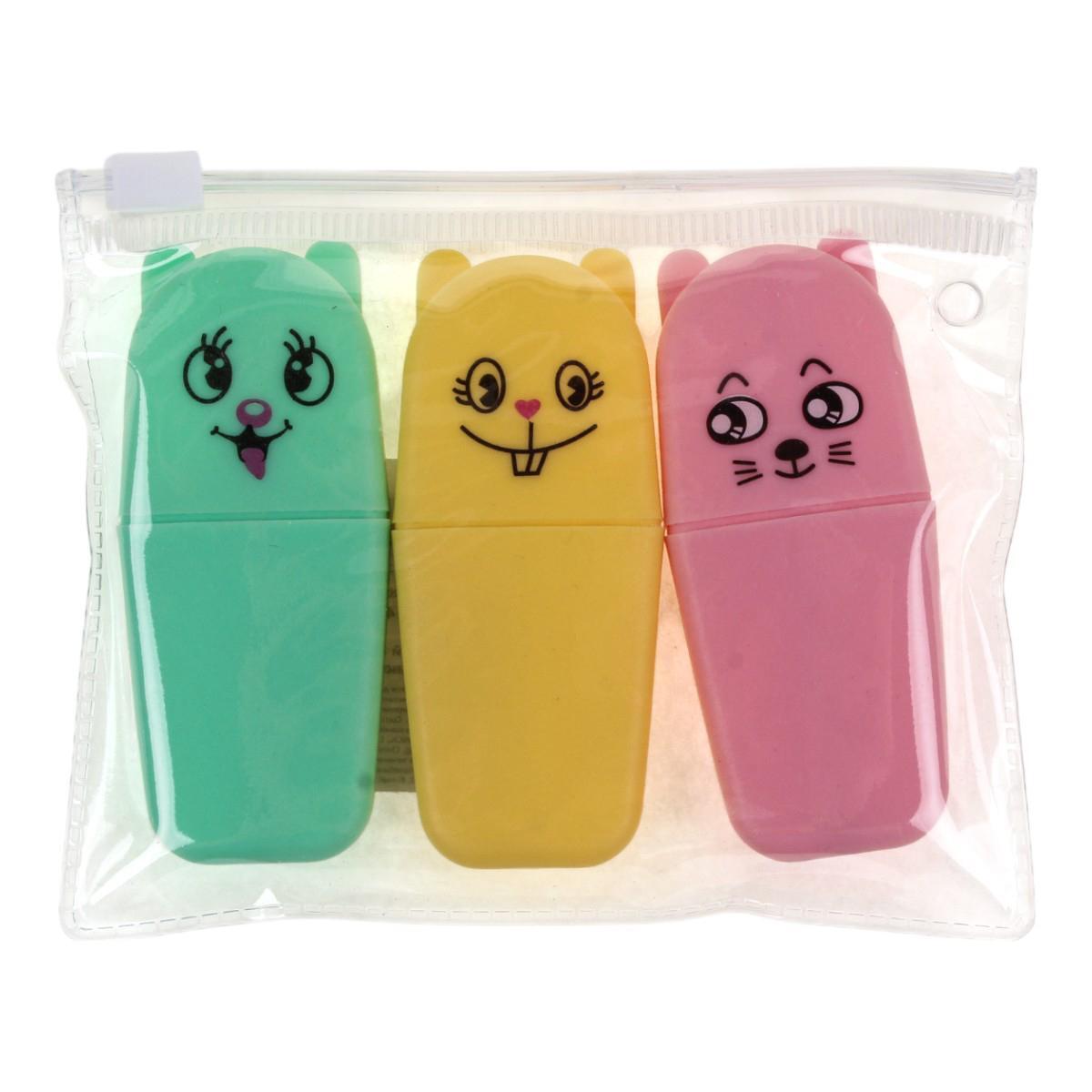 Текстовыделители "Зверята", 3 цвета, в ПВХ пенале, для учебы и работы