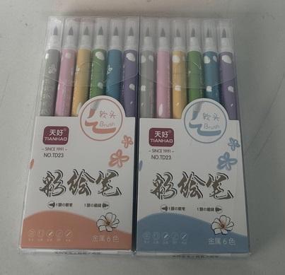 Текстовыделитель металлизированный, 6 цветов, длина 17см, диаметр 1см, с золотом и серебром