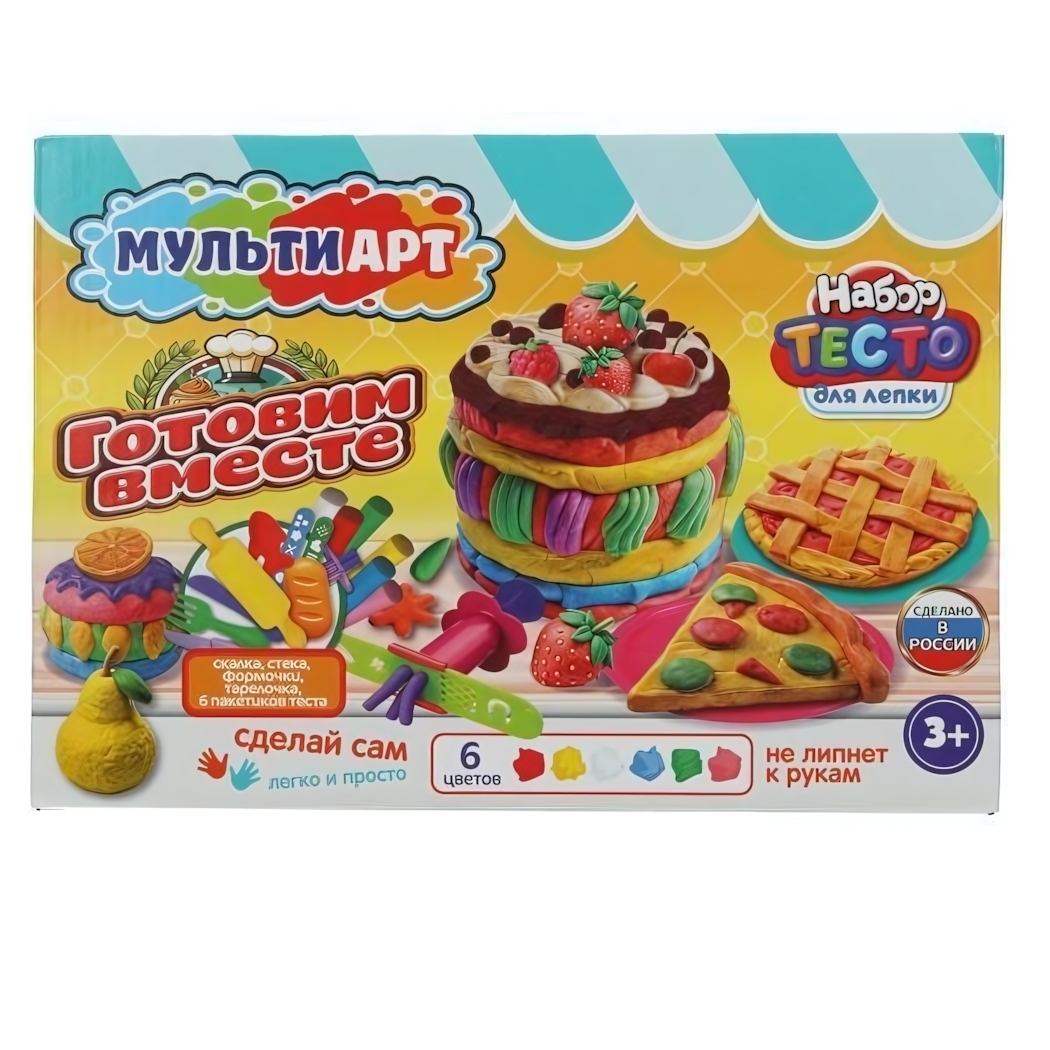 Набор теста для лепки "Готовим вместе", 6 цветов, 24см, с формочками, безопасно для детей
