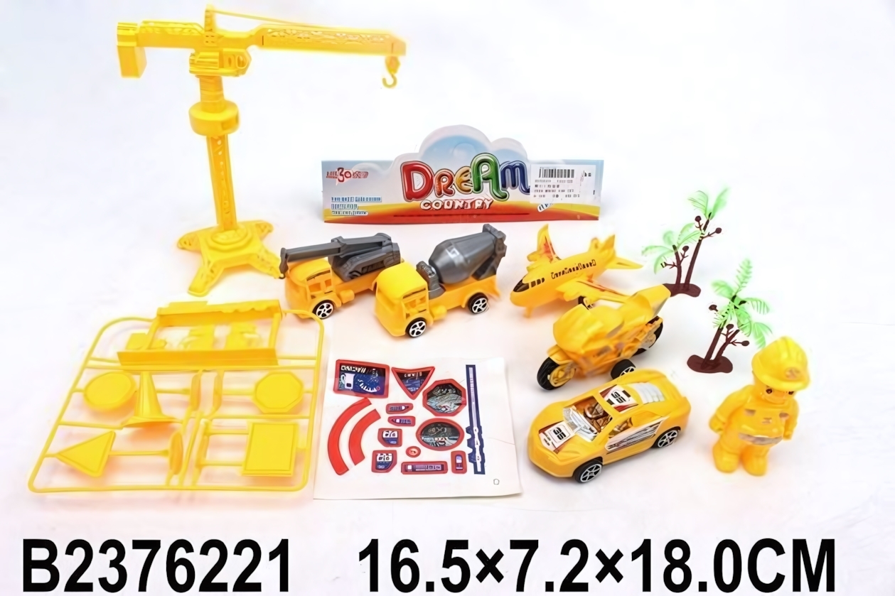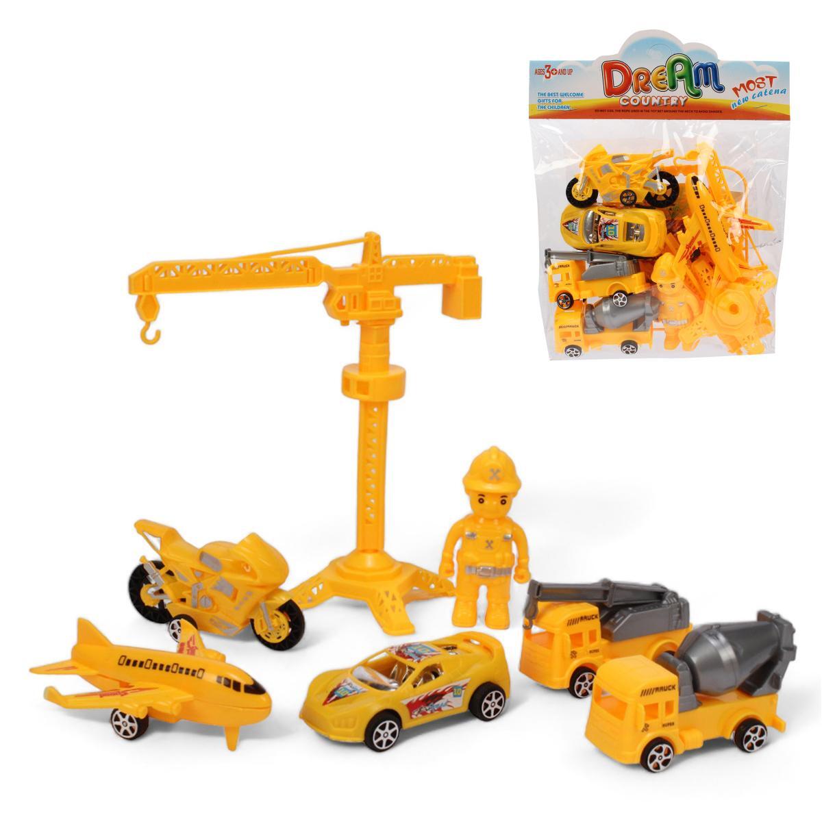 Набор игрушек «Dream Country»: строительная техника, 10 элементов, желтый, пластик, 16.5×7.2×18 см