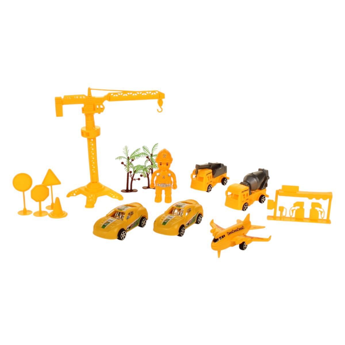 Набор из 10 элементов подарит часы увлекательной игры, развивая воображение и мелкую моторику. Ярко-желтые машины и фигурки создают реалистичную площадку для сюжетных игр — от подъема грузов краном до «ремонта» игрушечных дорог.