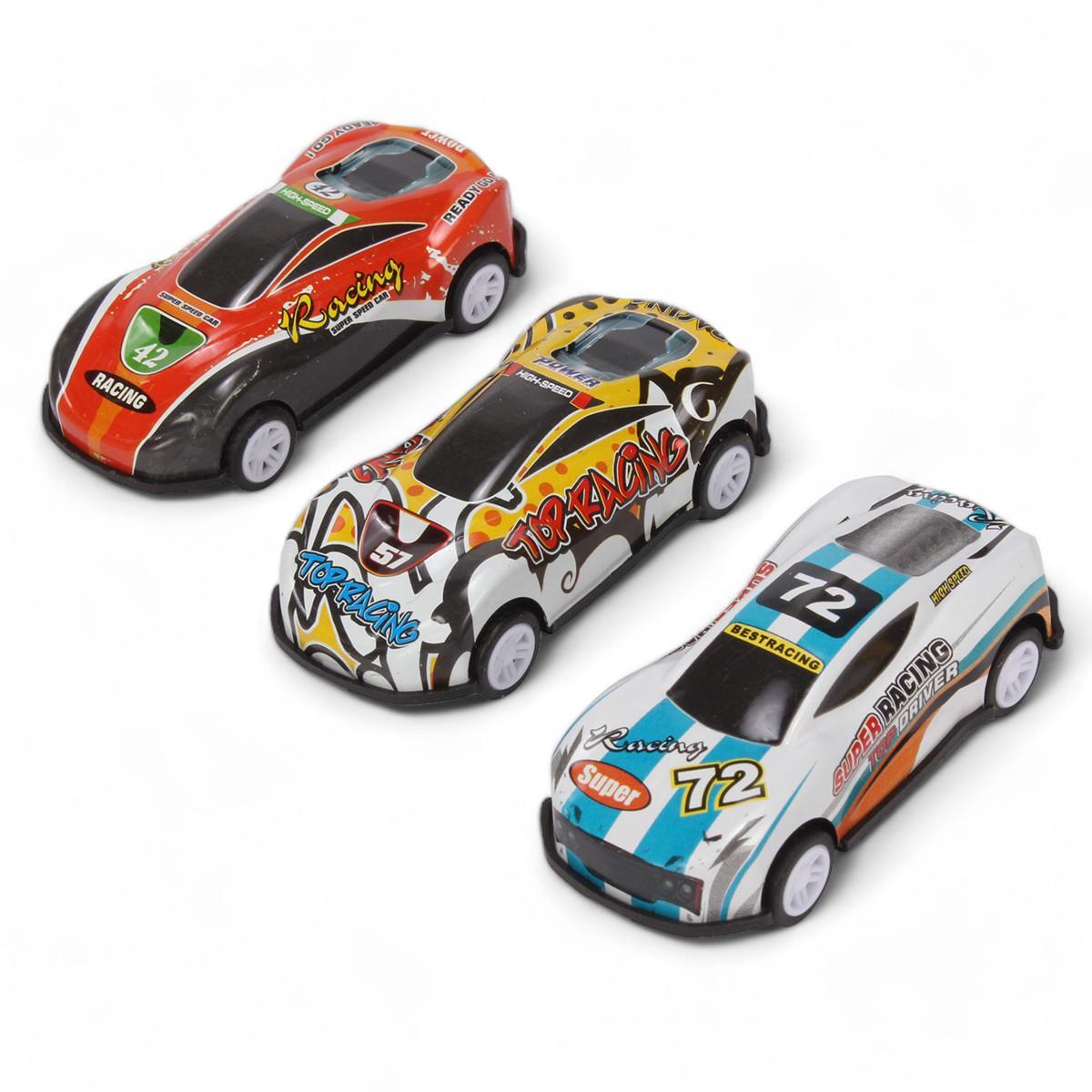 - 6 разноцветных машинок (красная, белая, синяя, оранжевая, желтая, серебристая)