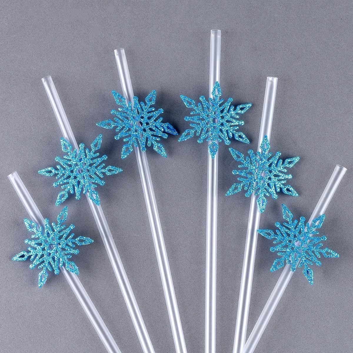 Трубочки для коктейля 'Снежинки' 6шт, голубые, декоративные, из пищевого пластика